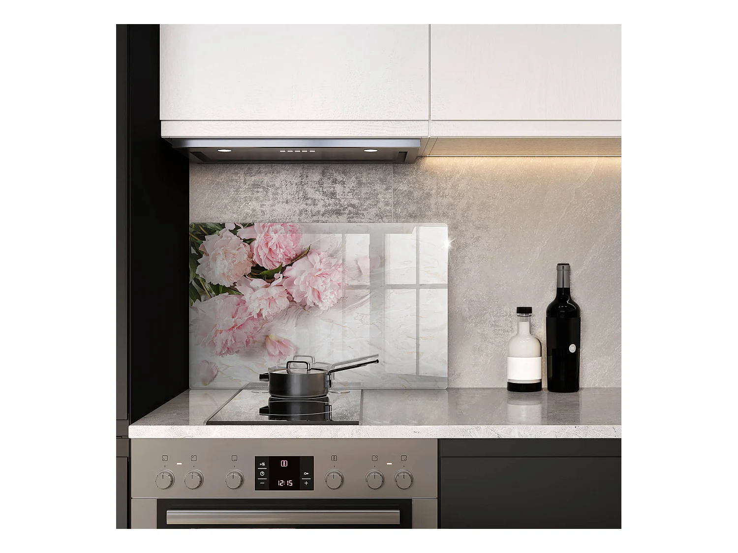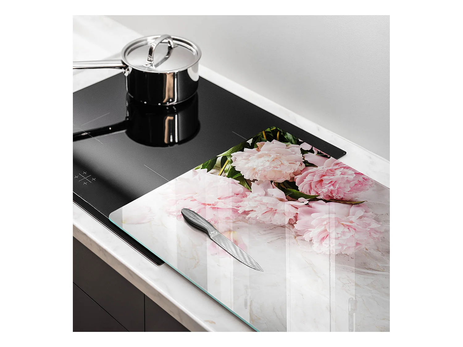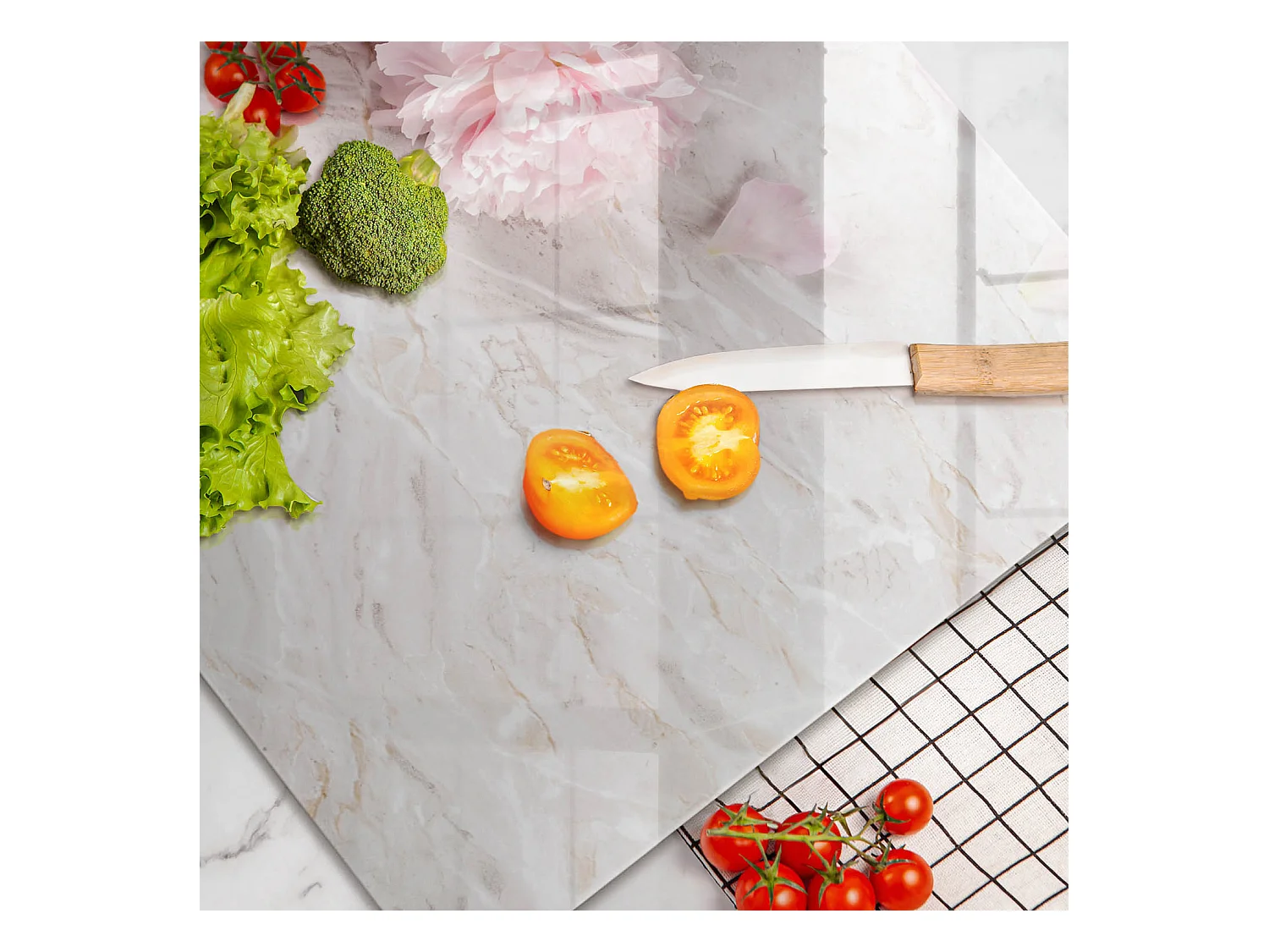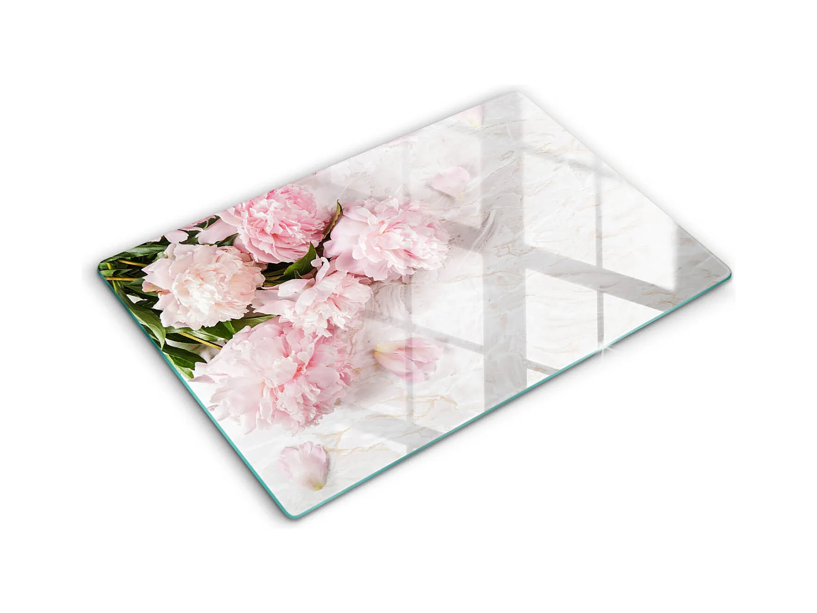 Rechteckiges Küchenbrett aus Glas, 80x52 cm. Zarte rosa Blüten