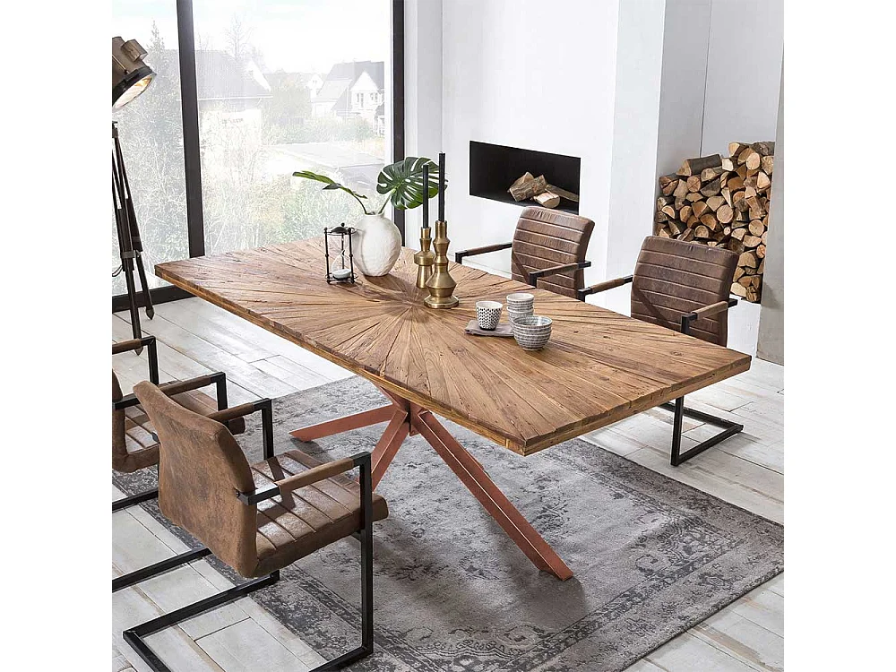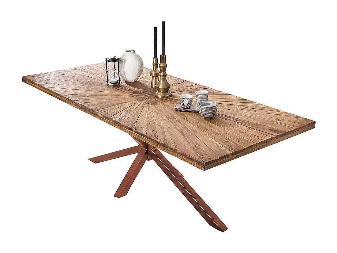 Recyclingholz Esstisch aus Teak massiv lackiert Spider Gestell