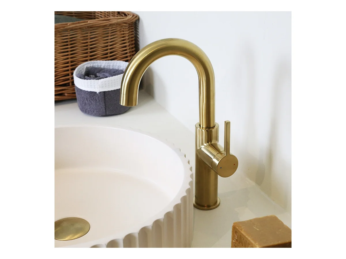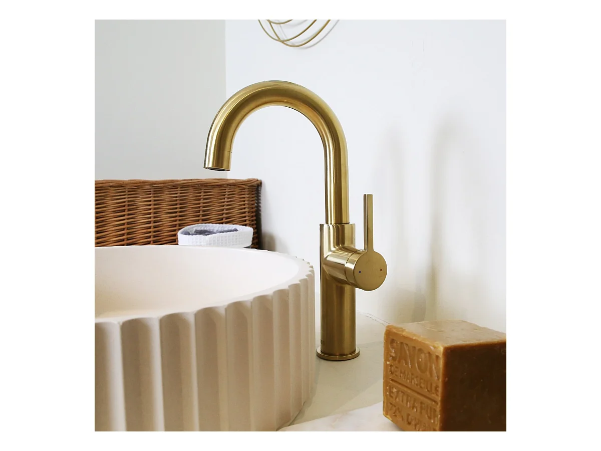 Reflet hoher Waschtischmischer gebürstetes Gold Essebagno