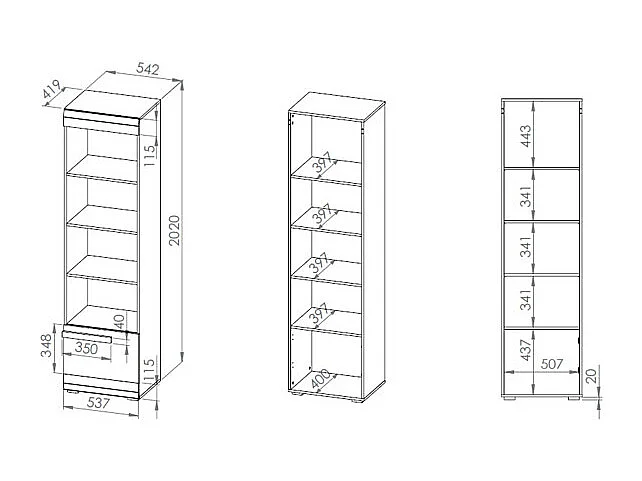 REGAL Blanco Pinie weiß / grau 55 / 42 / 202cm