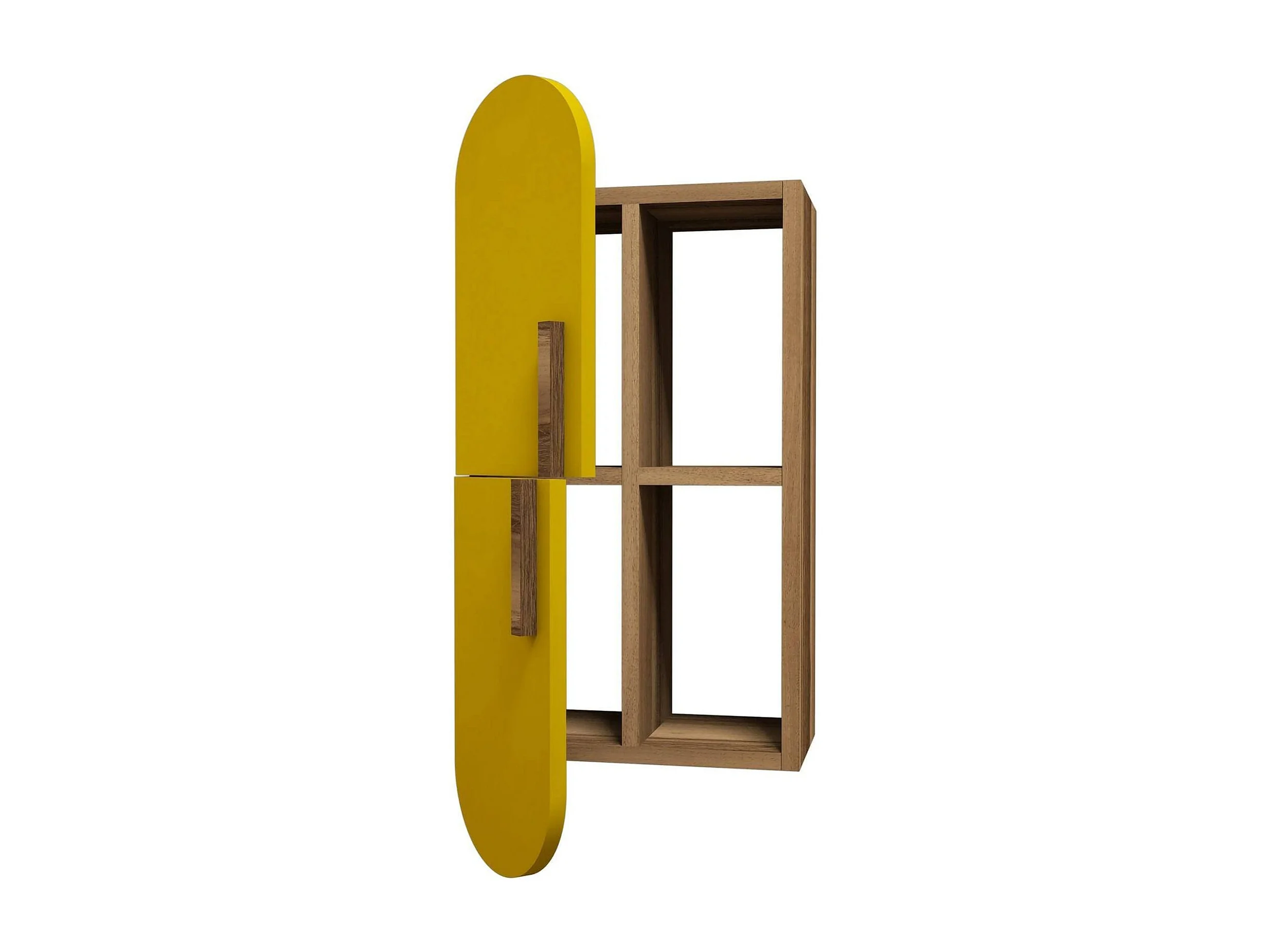 Regal Dpittarell, Gestell, Wandregal, Mehrzweckregale, 35x22 h60 cm, Walnuss und Gelb
