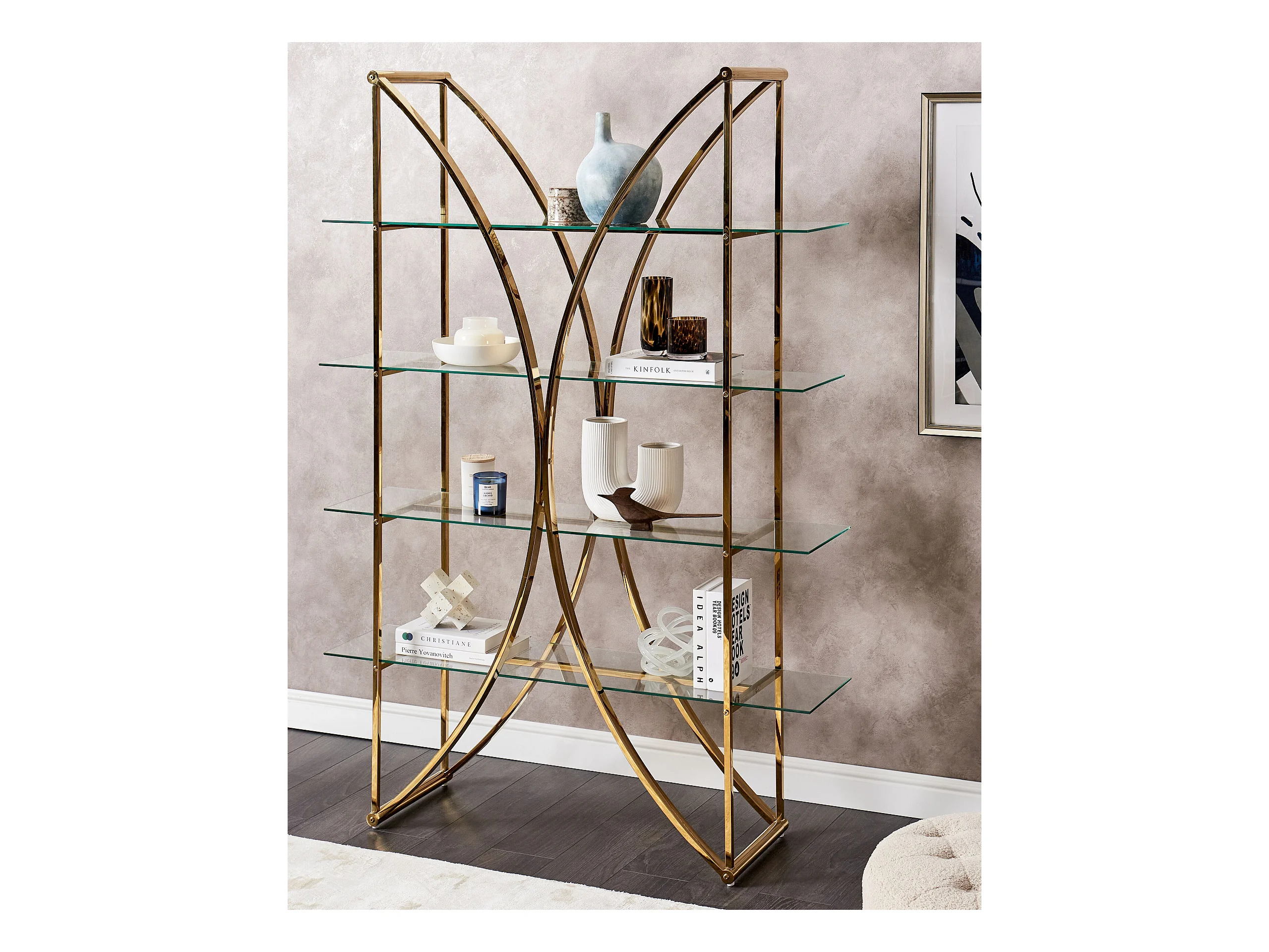 Regal gold aus Edelstahl mit Glasböden 4 Fächer glänzend glamourös Hollow