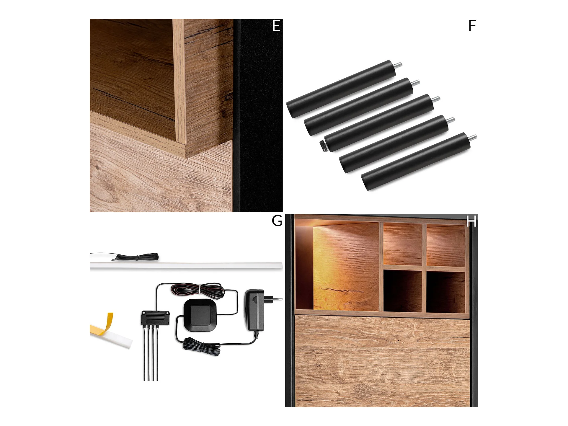 Regal Kreuzeinlage - schwarz - Eiche natur - LOFTY