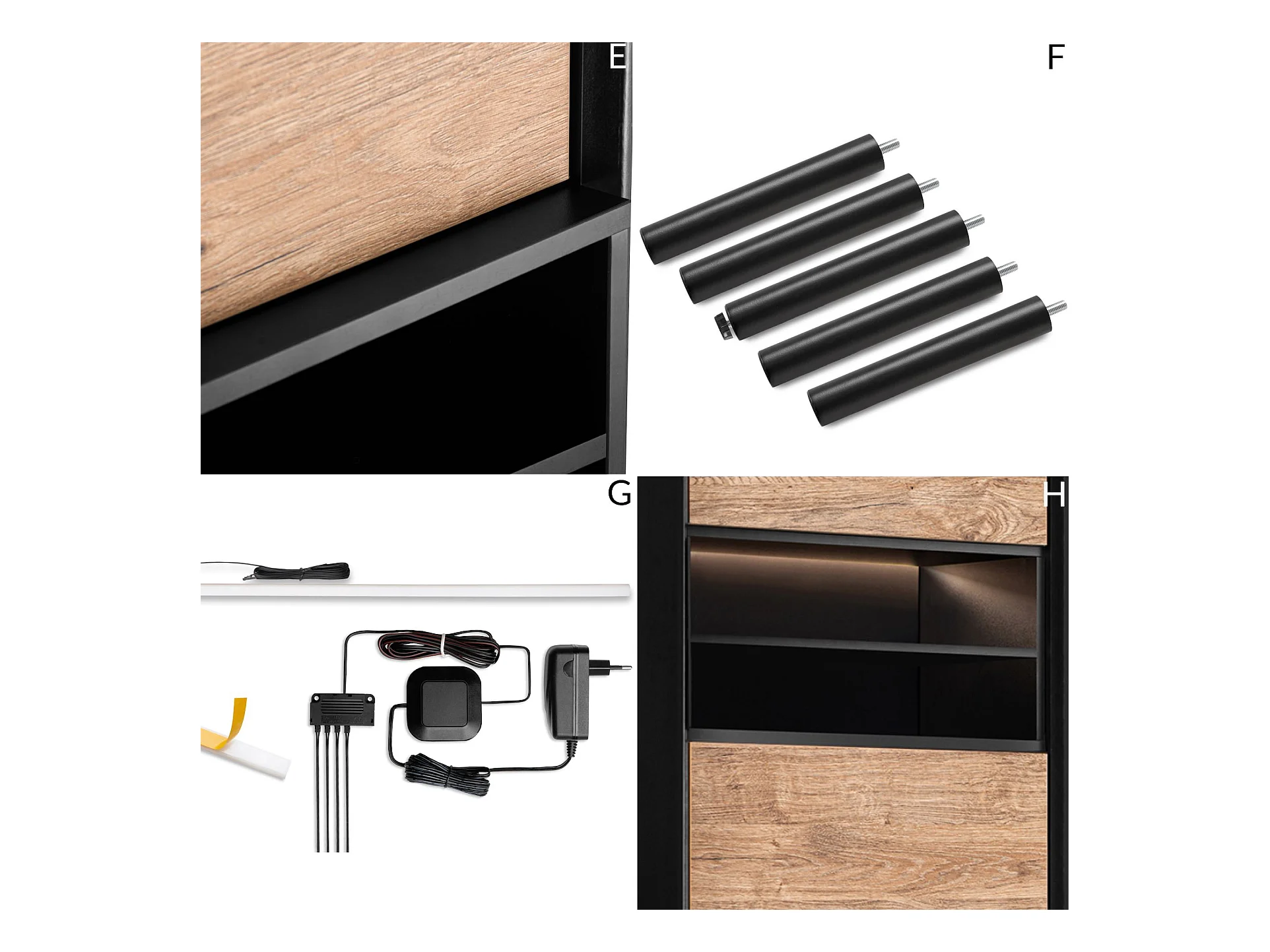 Regal Kreuzeinlage - schwarz - Eiche natur - LOFTY