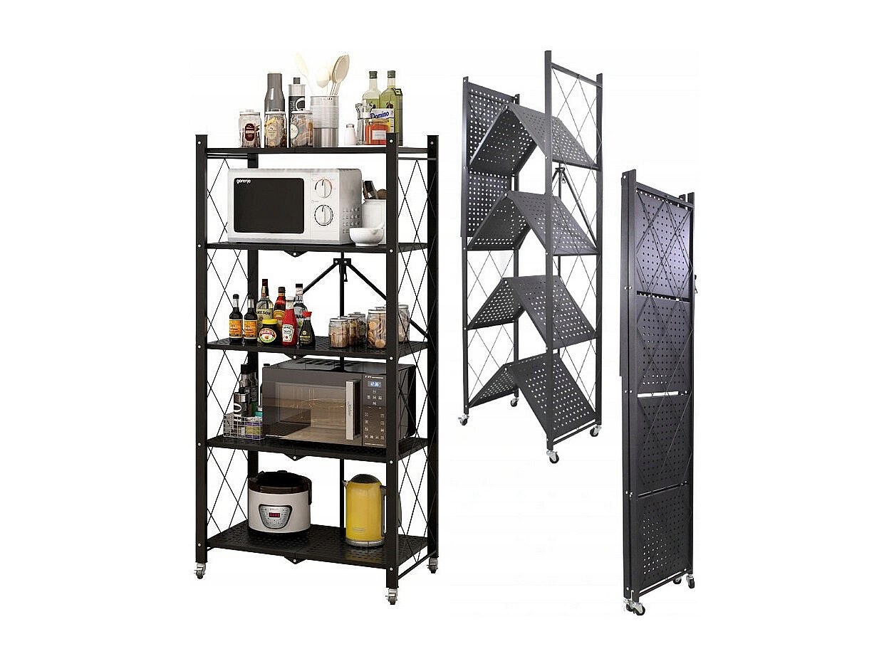 Regał Magazynowy FS005 | Czarny | Metalowy Składany | 72x34x163 cm