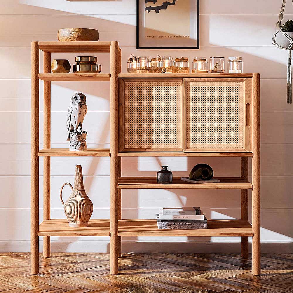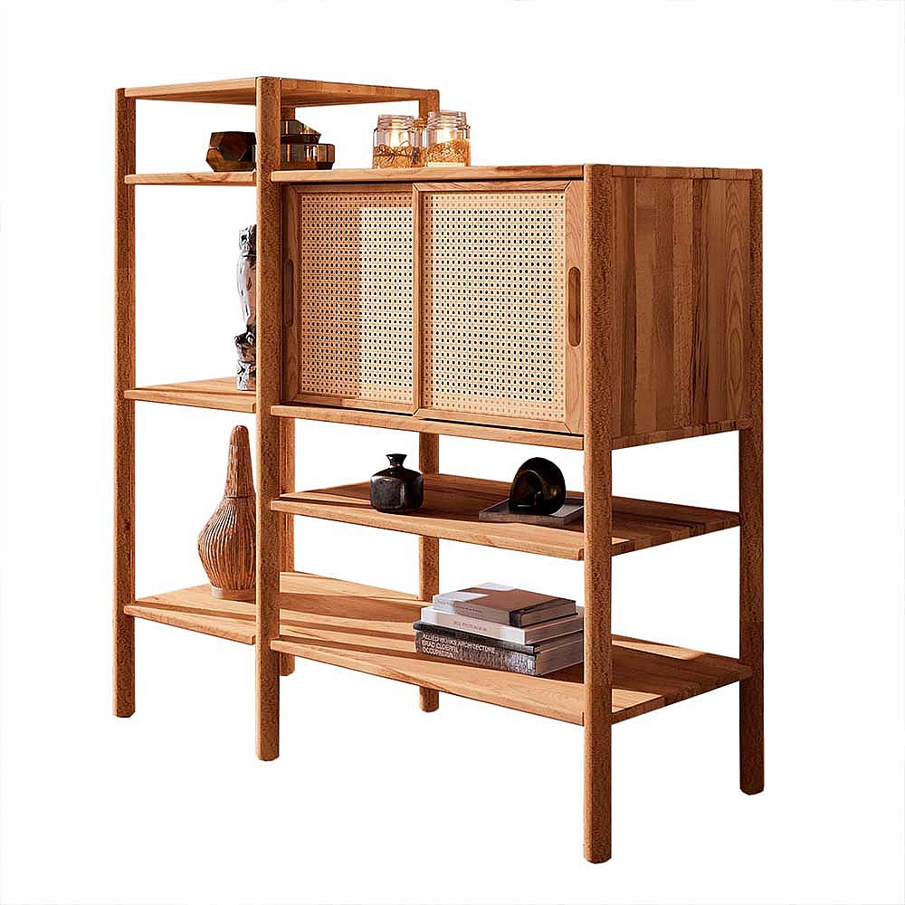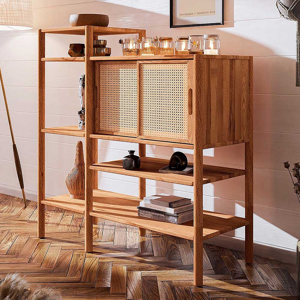 Regal Massiv Wildbuche mit Rattan Schiebet�ren 123 cm hoch