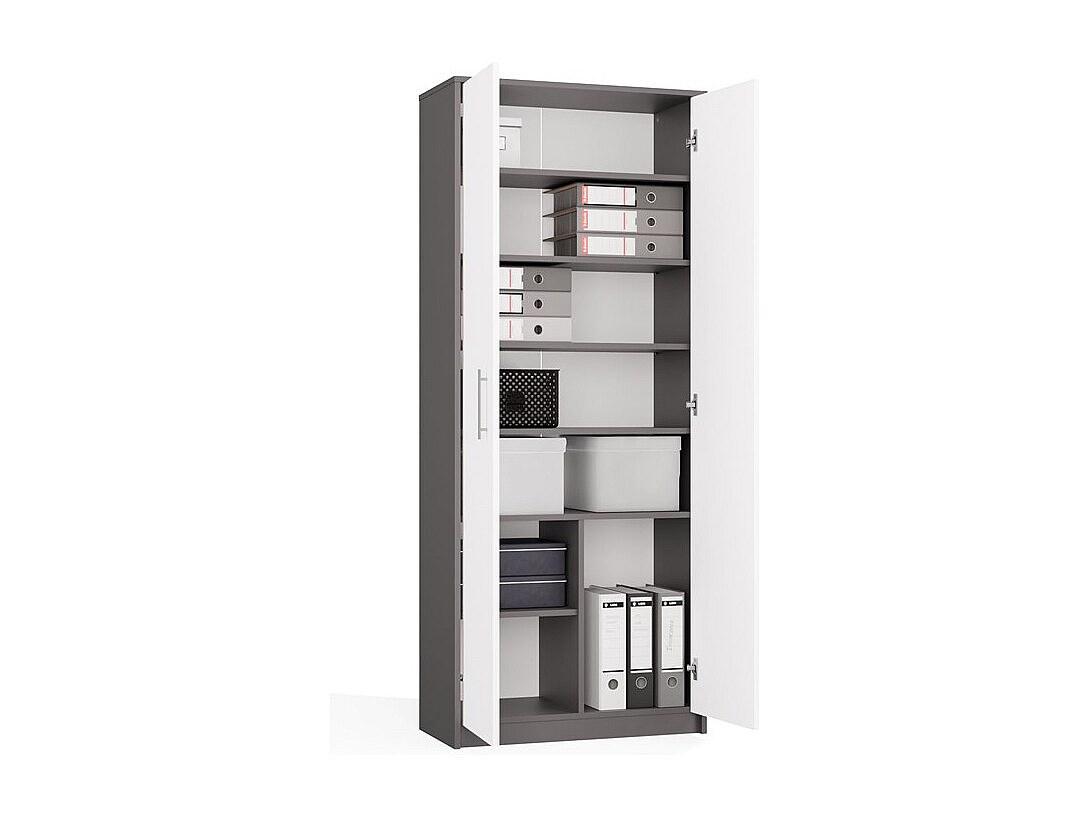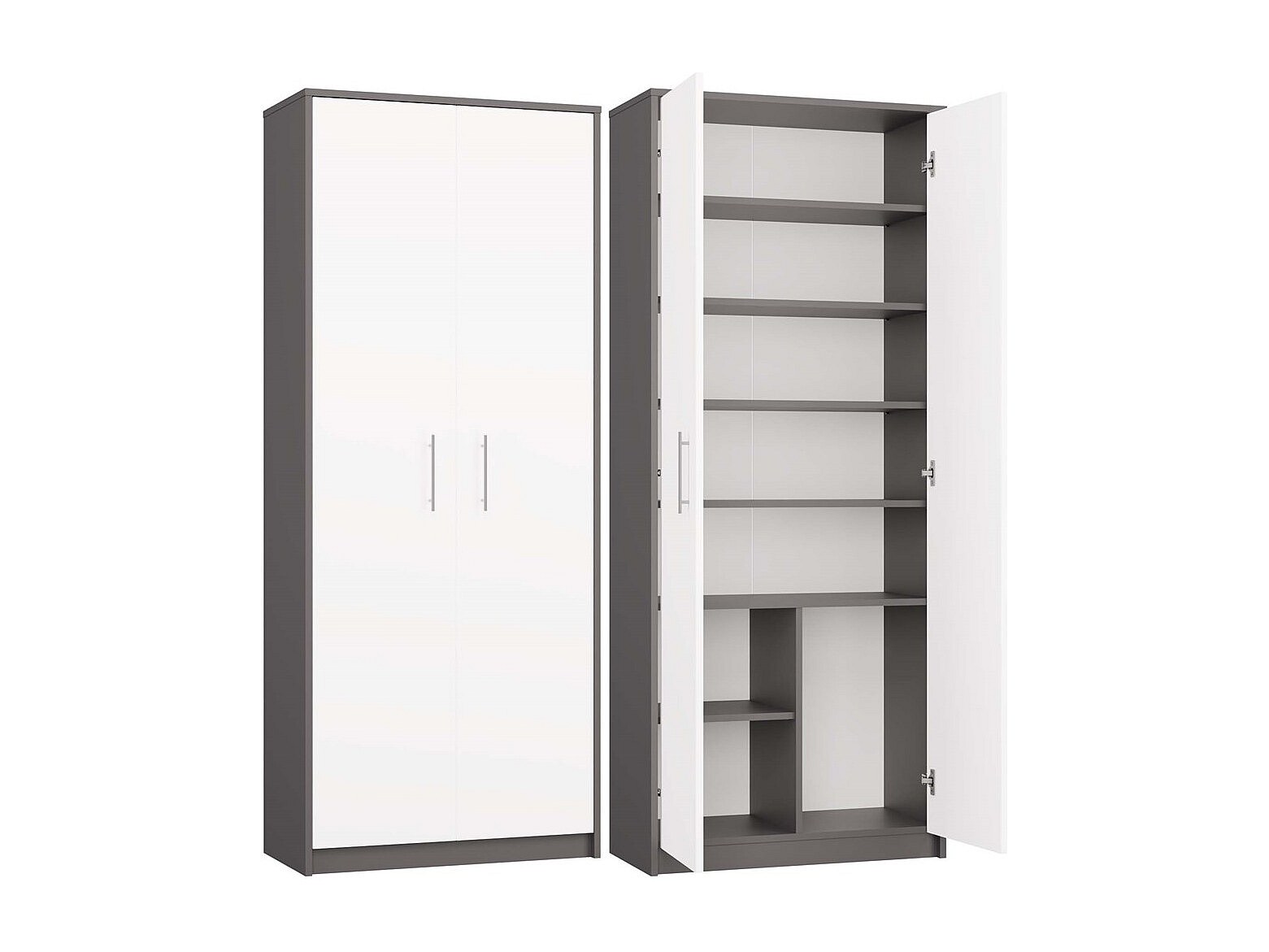 Regał Oliv 2D | Antracyt/ Biel | 74x35x180 cm | Regał Zamykany, 2 Drzwi, 8 Półek