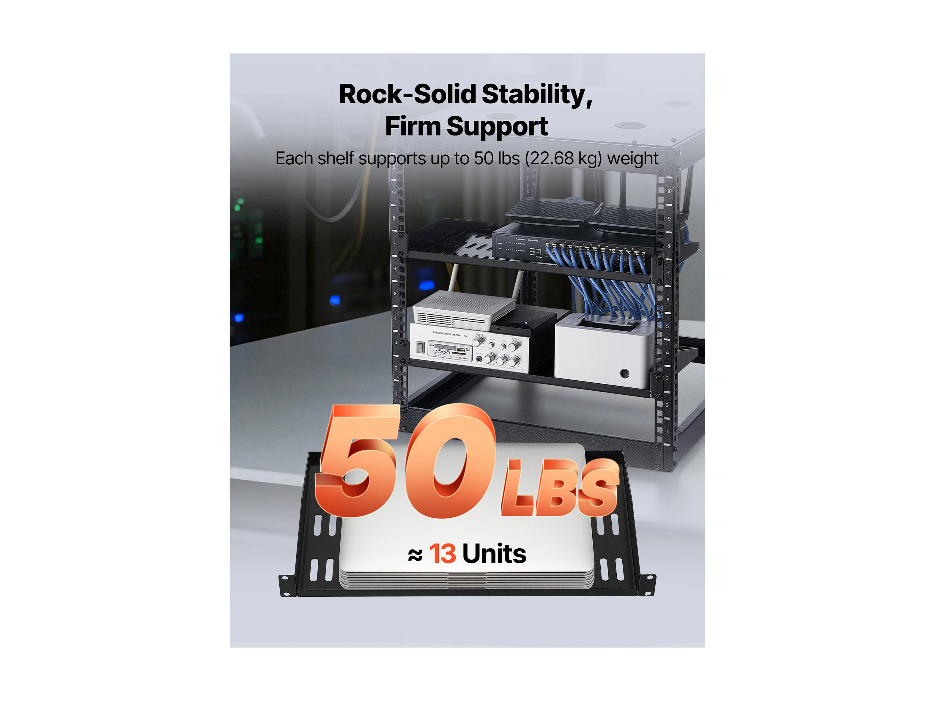 Regal Rack Server Netzwerk 1U SucceBuy, Satz von 4, Tiefe 25,4 cm, Belastung 22,68 kg, Montage Rack oder Wand, mit Belüfteter Ablage, Gute Luftzirkulation