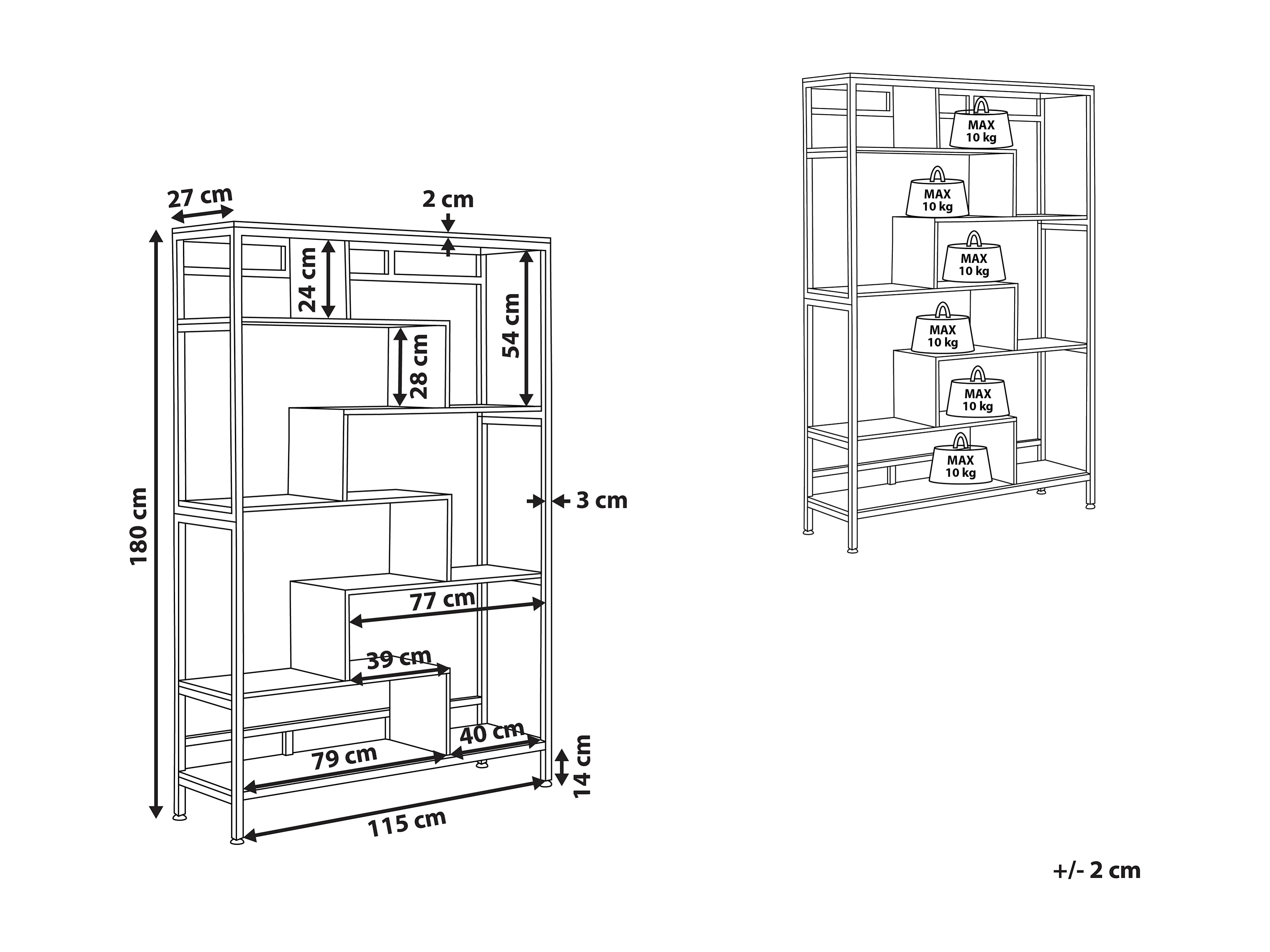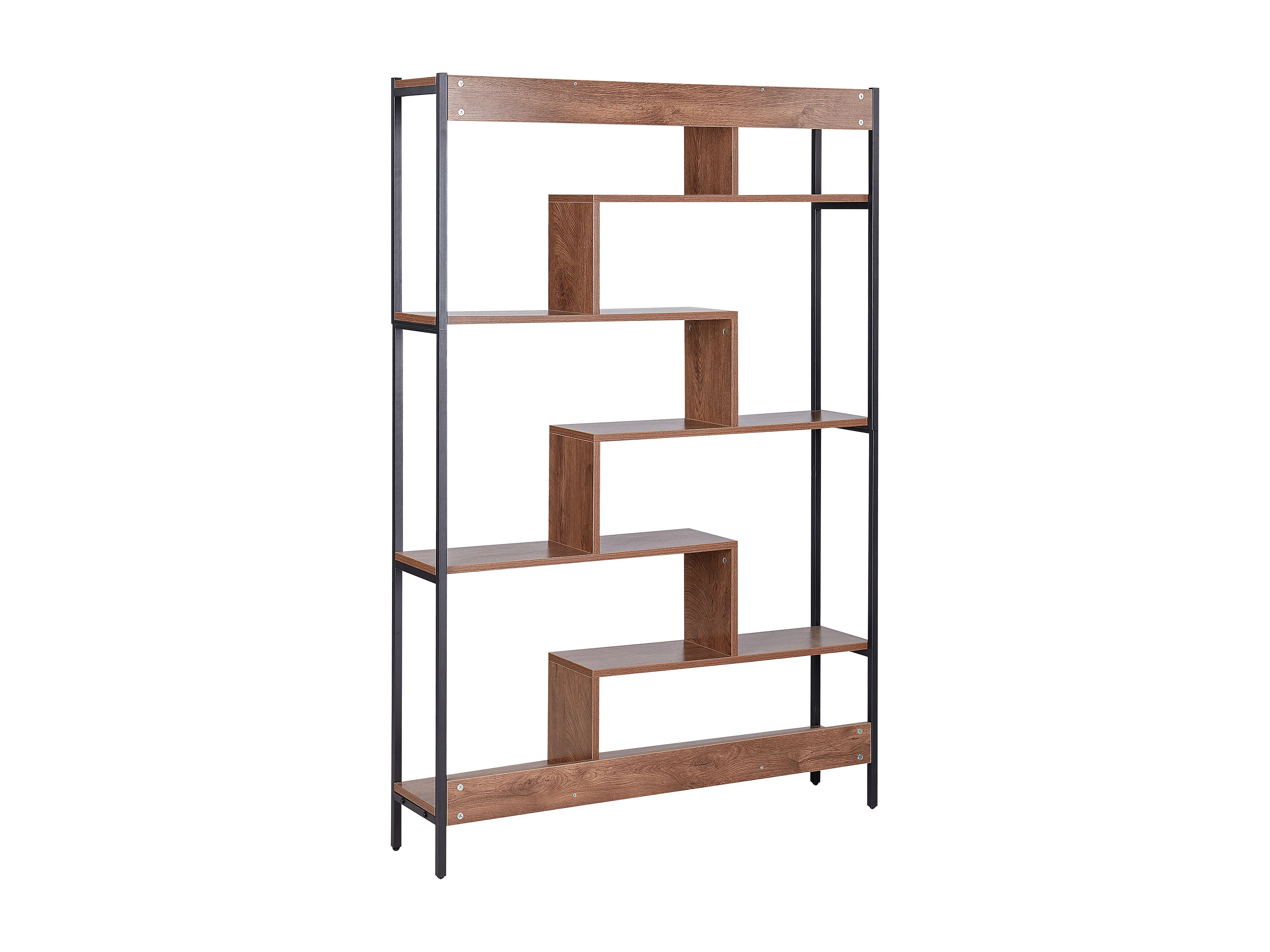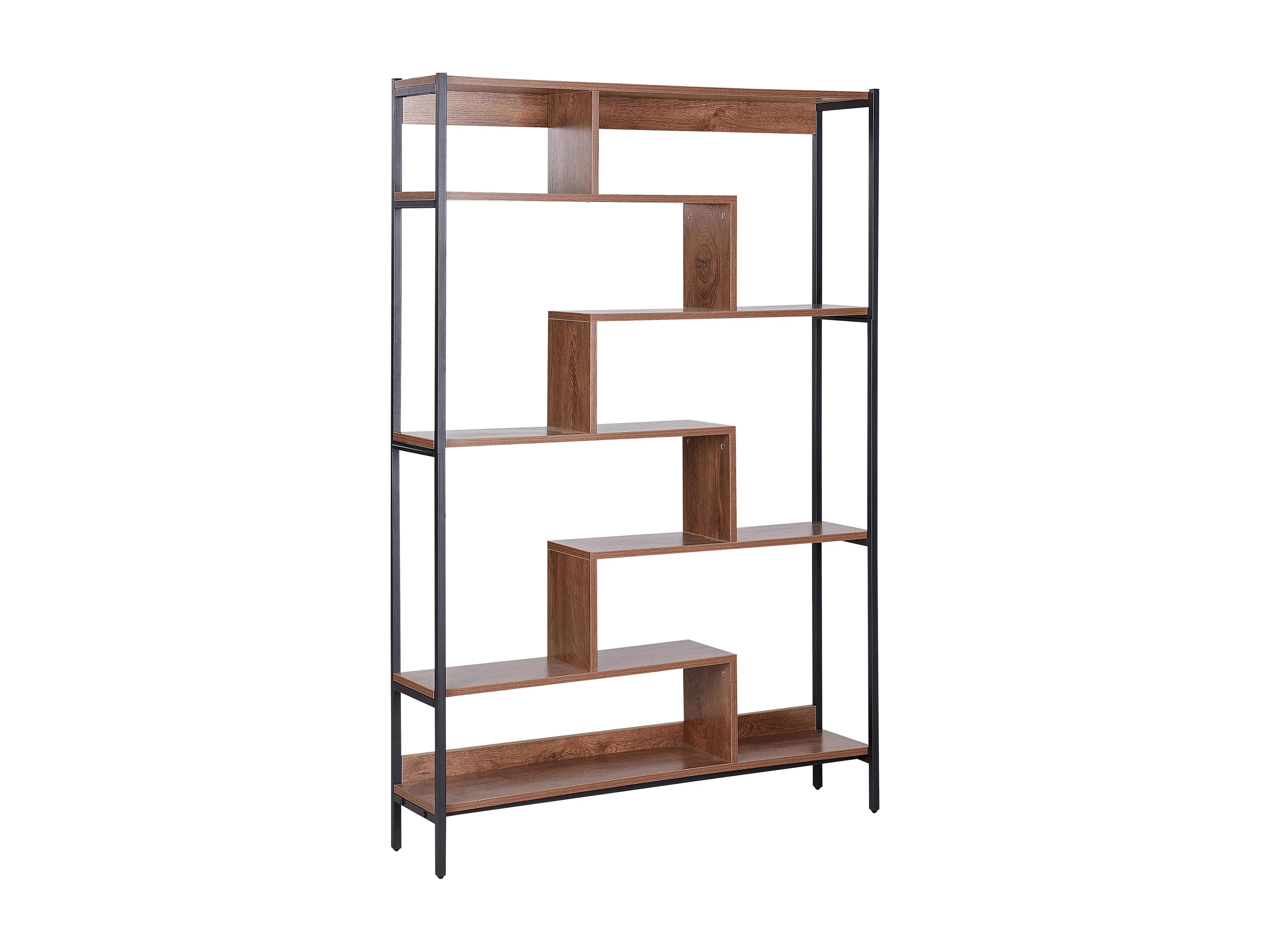 Originelles Regal dunkler Holzfarbton mit Metallgestell schwarz 6 Fächer Daven