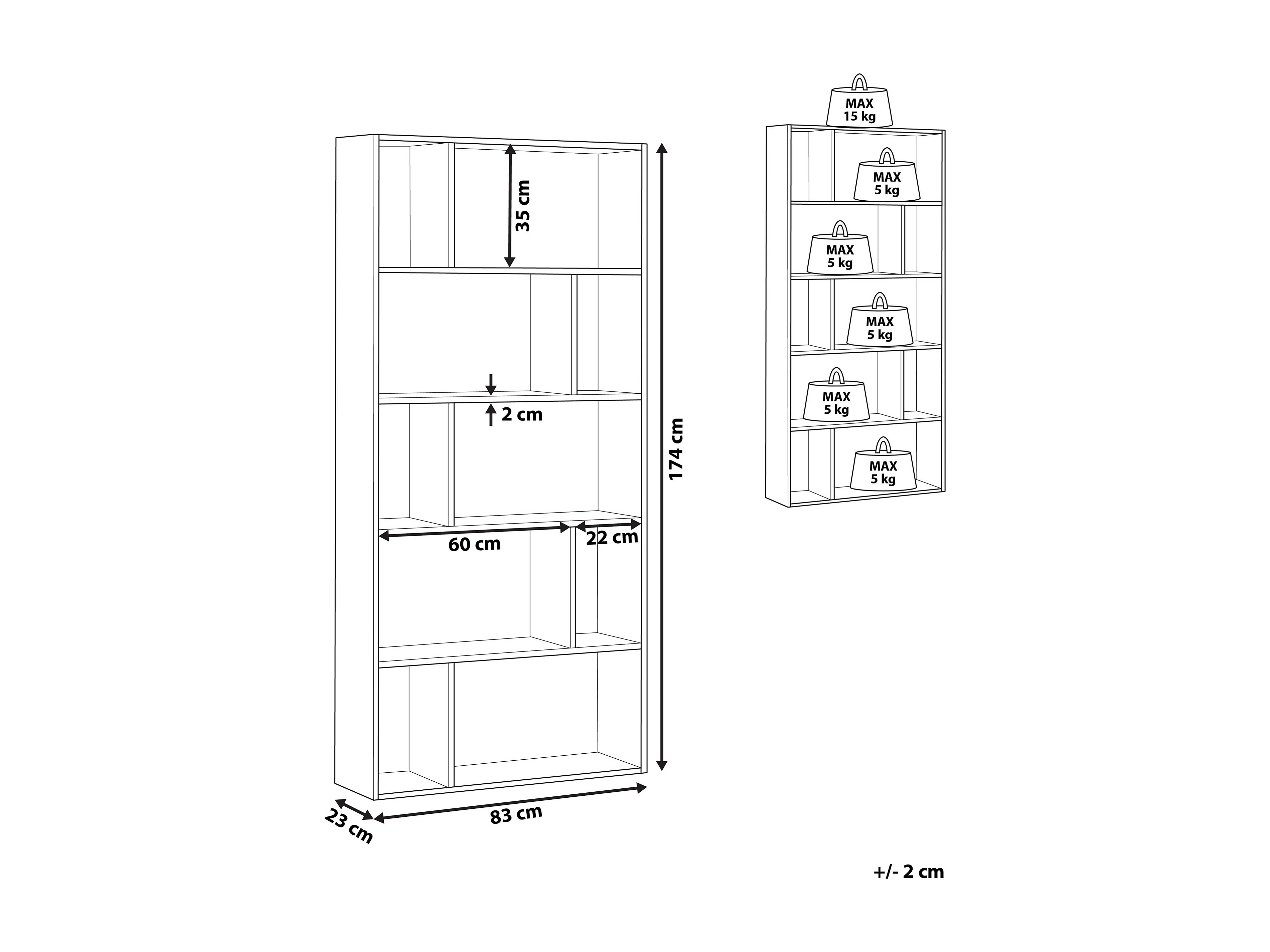 Bücherregal mit 5 Fächern ORILLA 174 cm Weiss