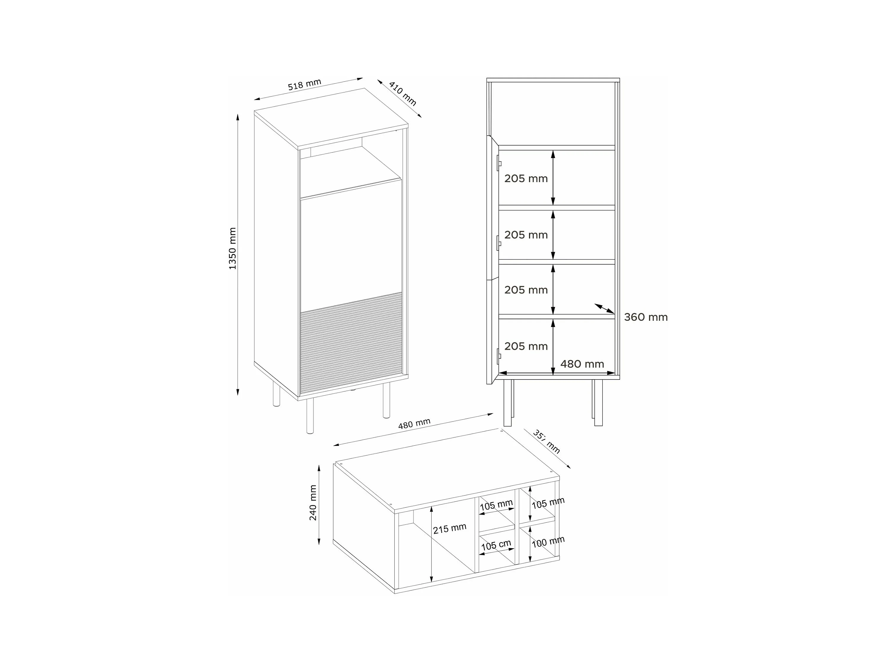 Regale Weineinlage - schwarz / Eiche natur - LOFTY