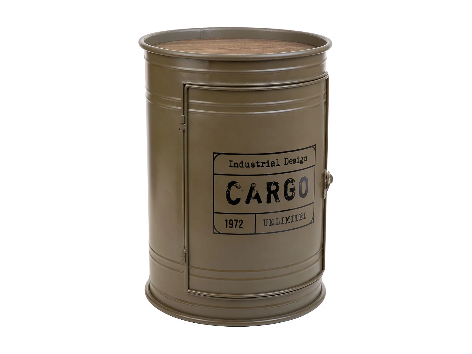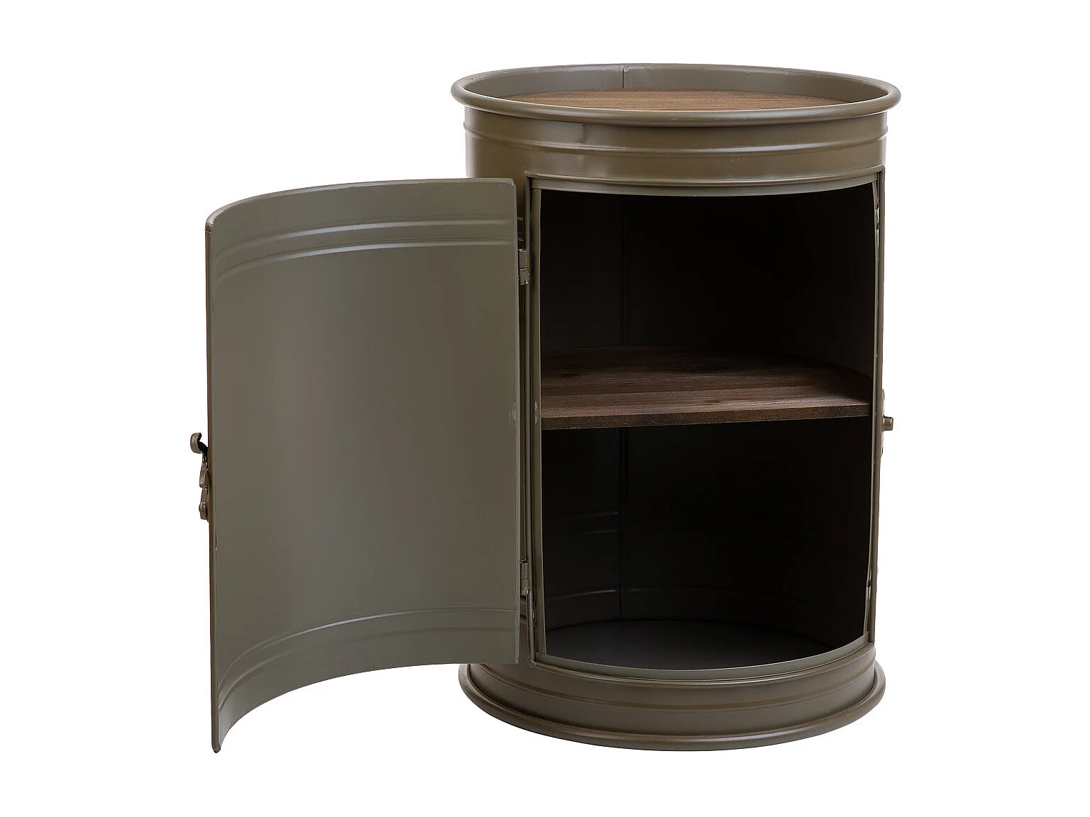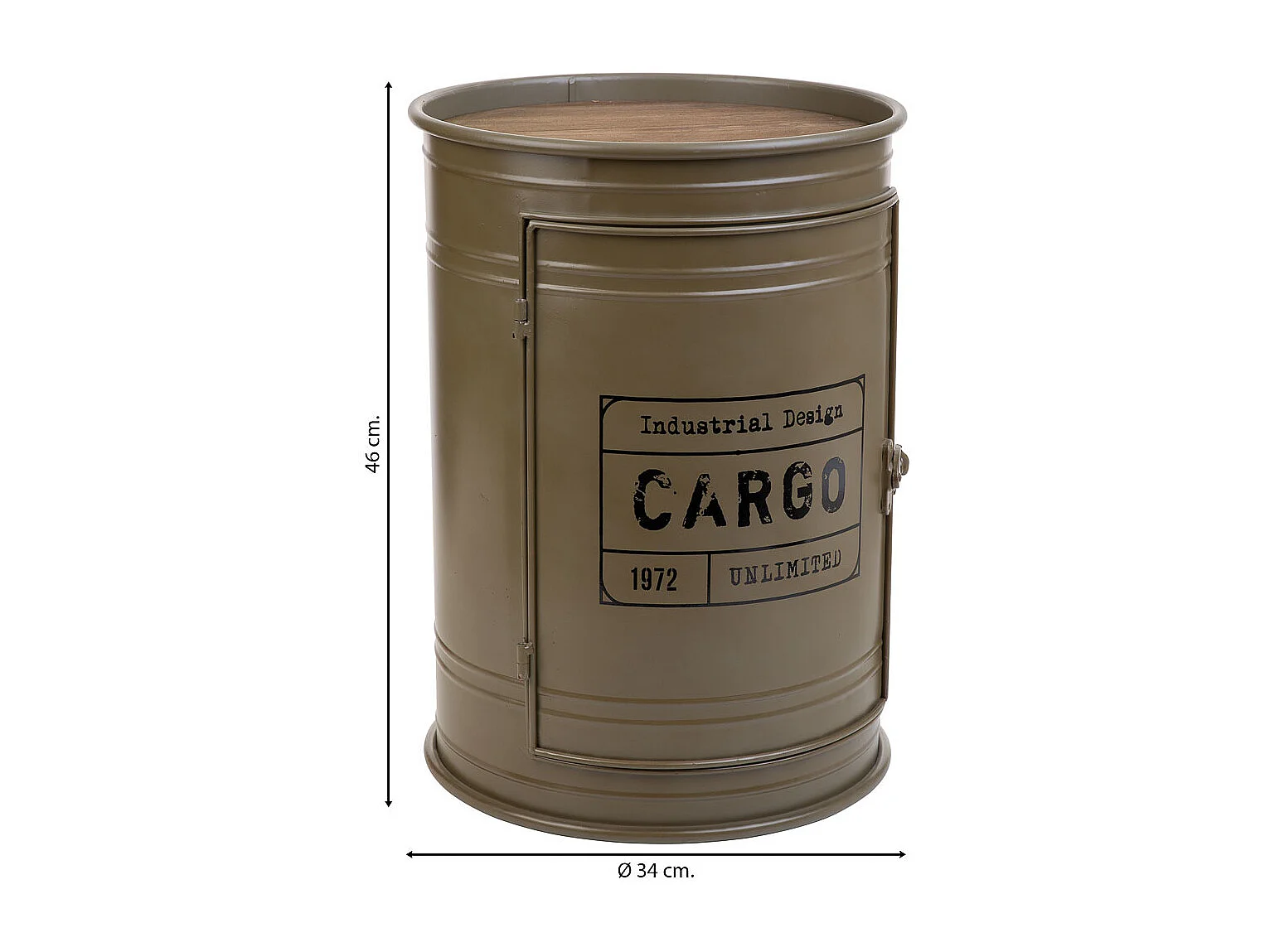 Regaltisch aus Metall und Holz mit grün bedrucktem Innenregal D34x46