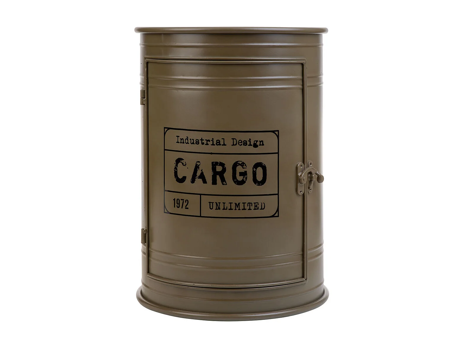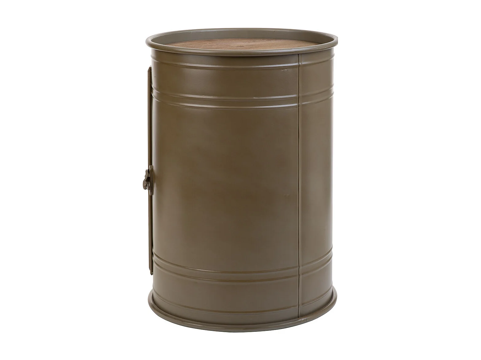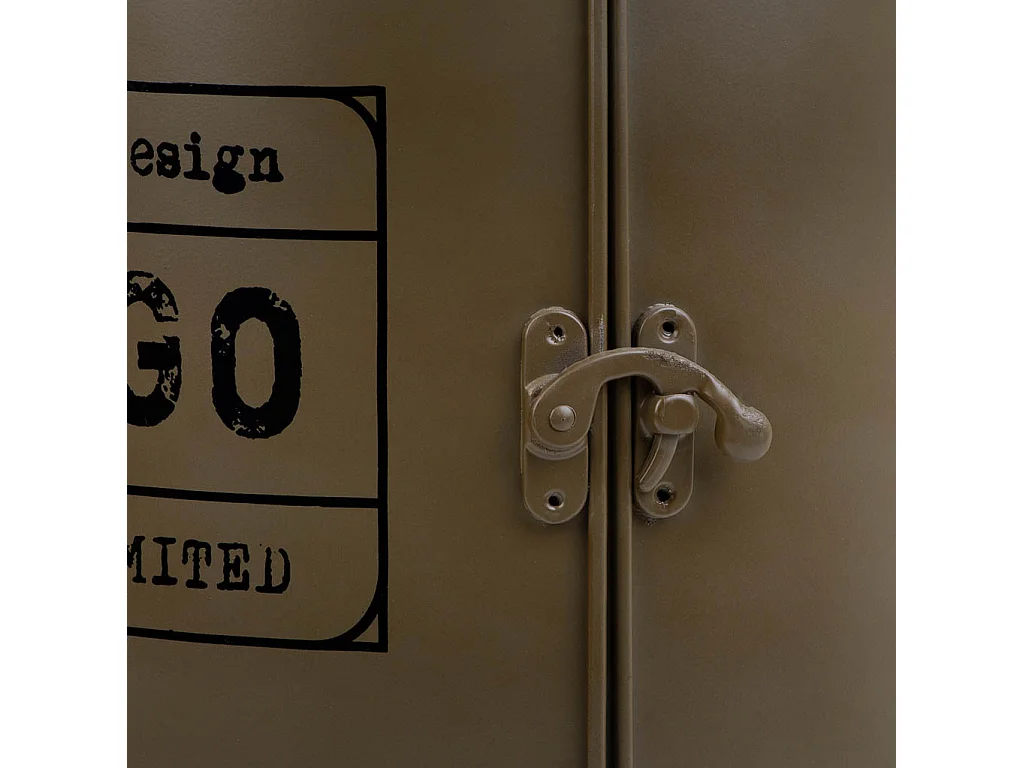 Regaltisch aus Metall und Holz mit grün bedrucktem Innenregal D34x46