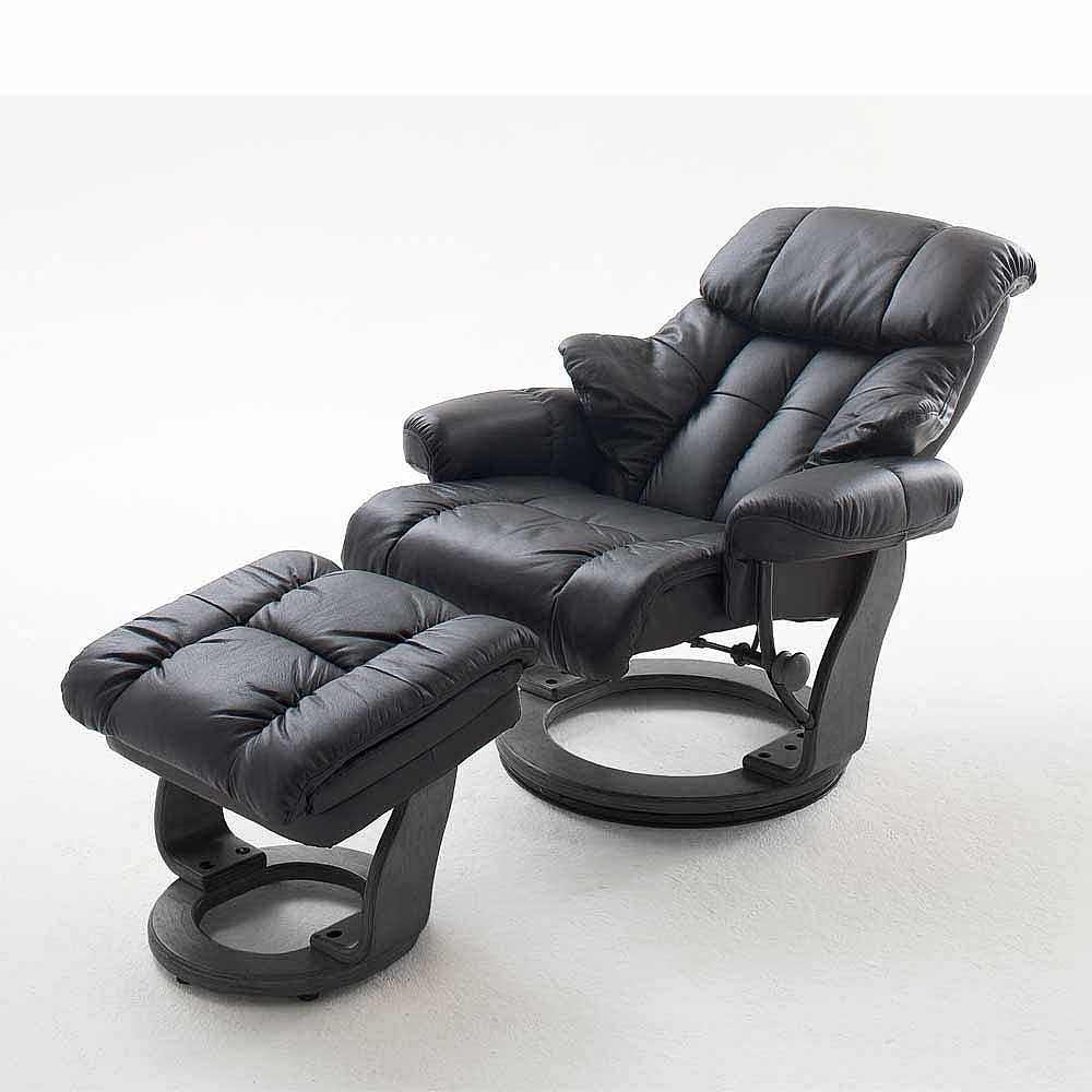 Relaxsessel aus Leder Schwarz mit Hocker (zweiteilig)