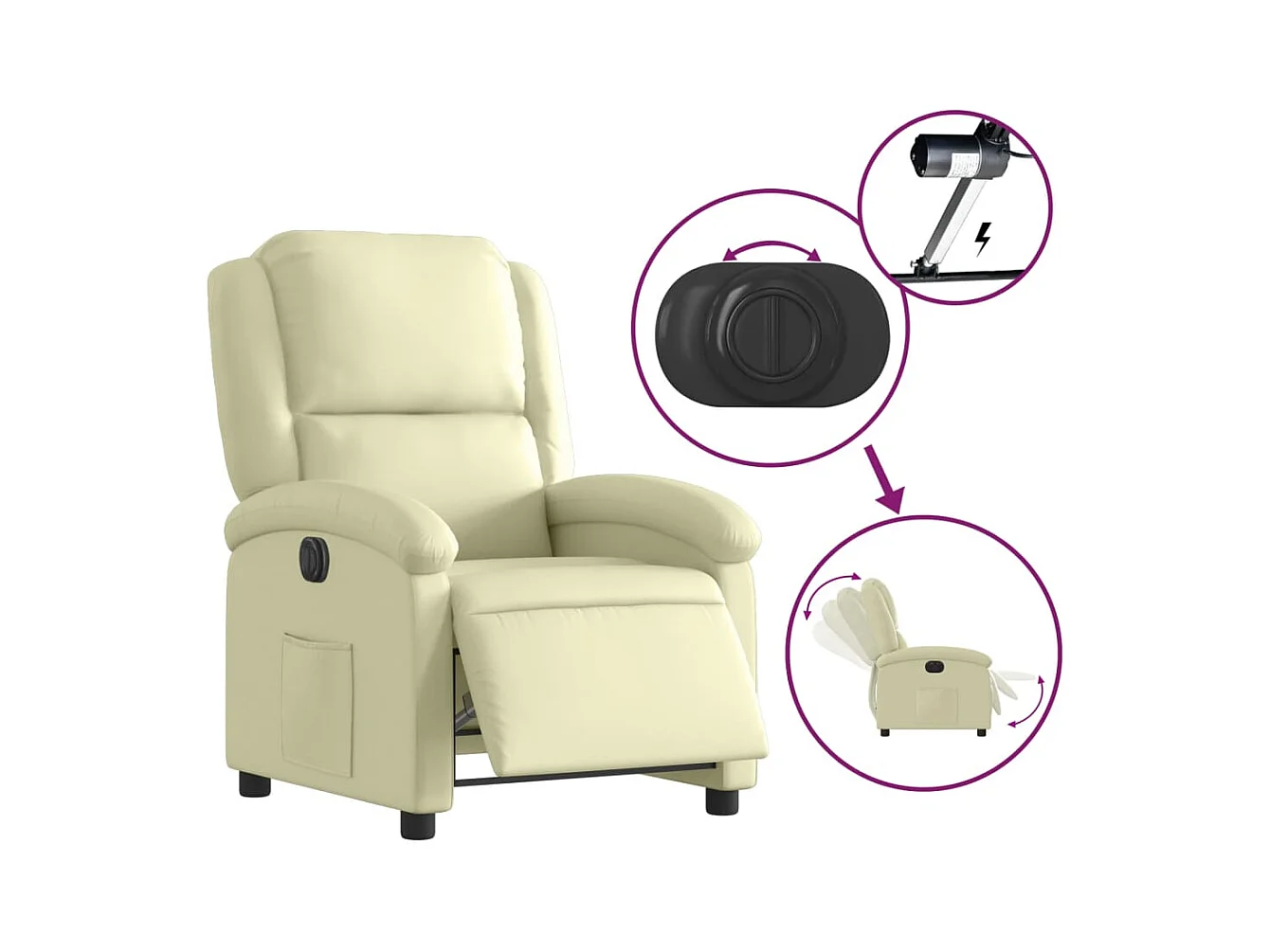 Relaxsessel Elektrisch | Fernsehsessel Creme Echtleder -gkd92015