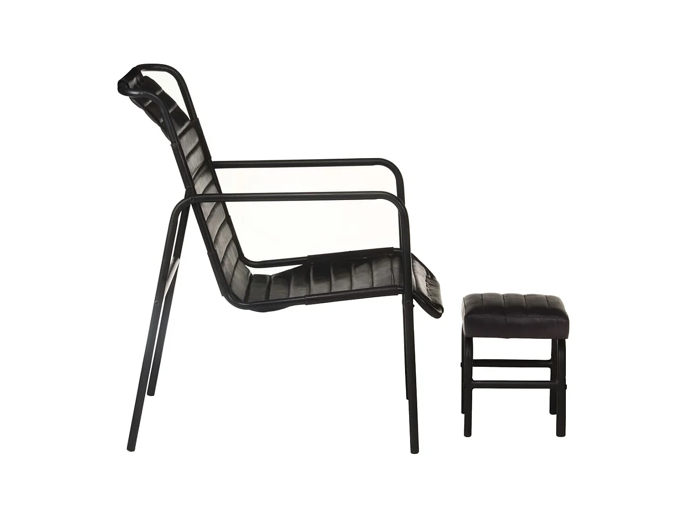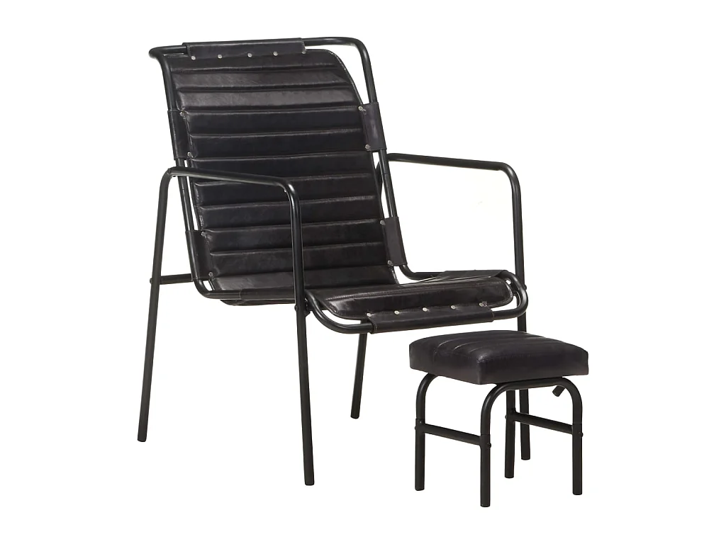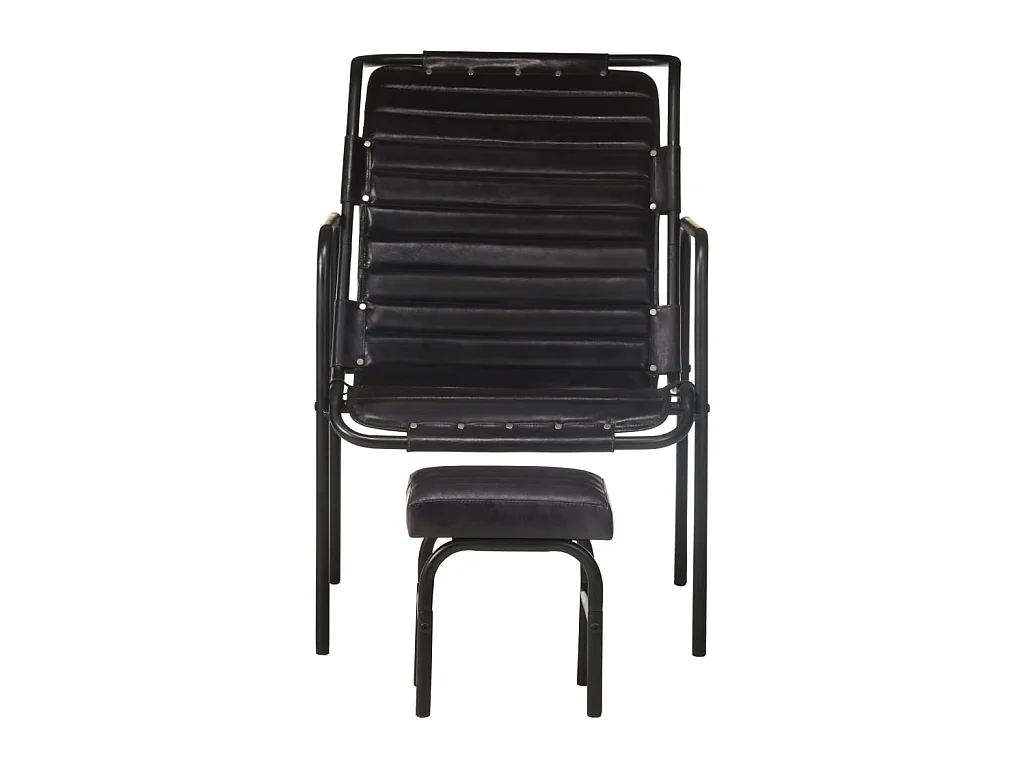 Relaxsessel | Fernsehsessel mit Fußhocker Schwarz Echtleder -gkd517832