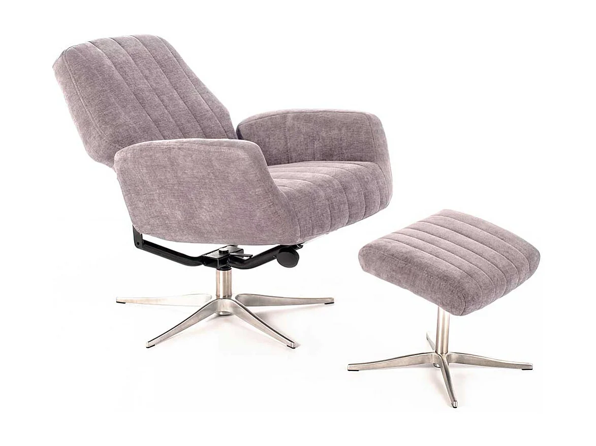 Relaxsessel in Hellgrau Samt Fußhocker (zweiteilig)