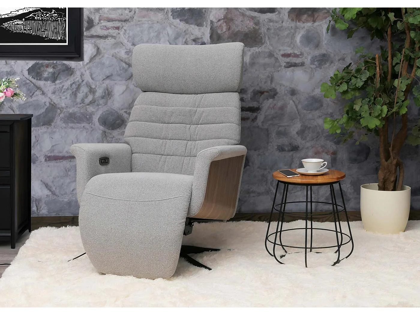 Relaxsessel MCW-N56, Stoff grau, Holz Walnuss-Optik