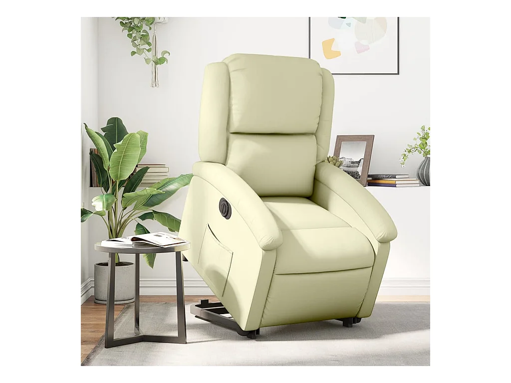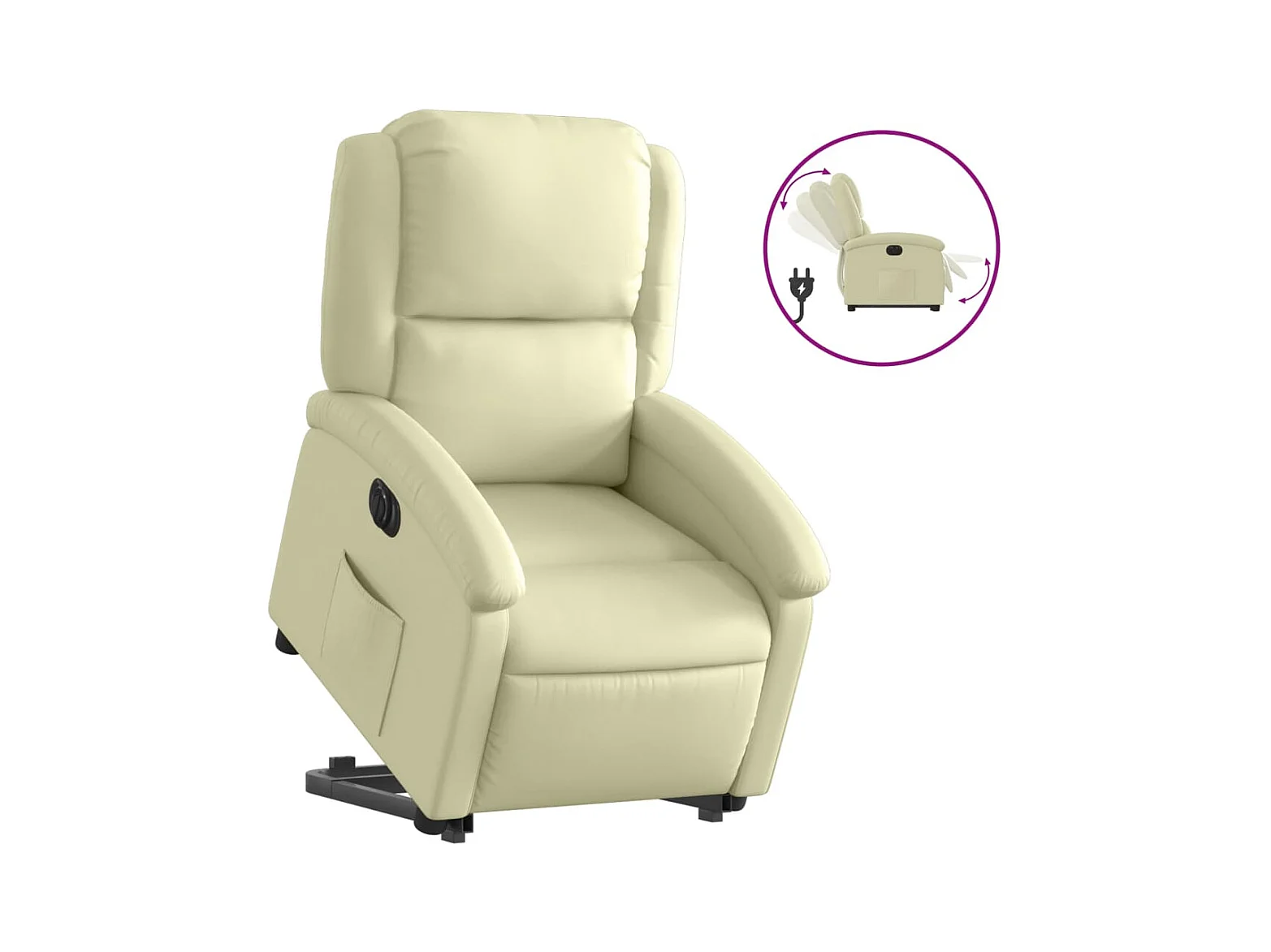 Relaxsessel mit Aufstehhilfe Elektrisch Creme Echtleder