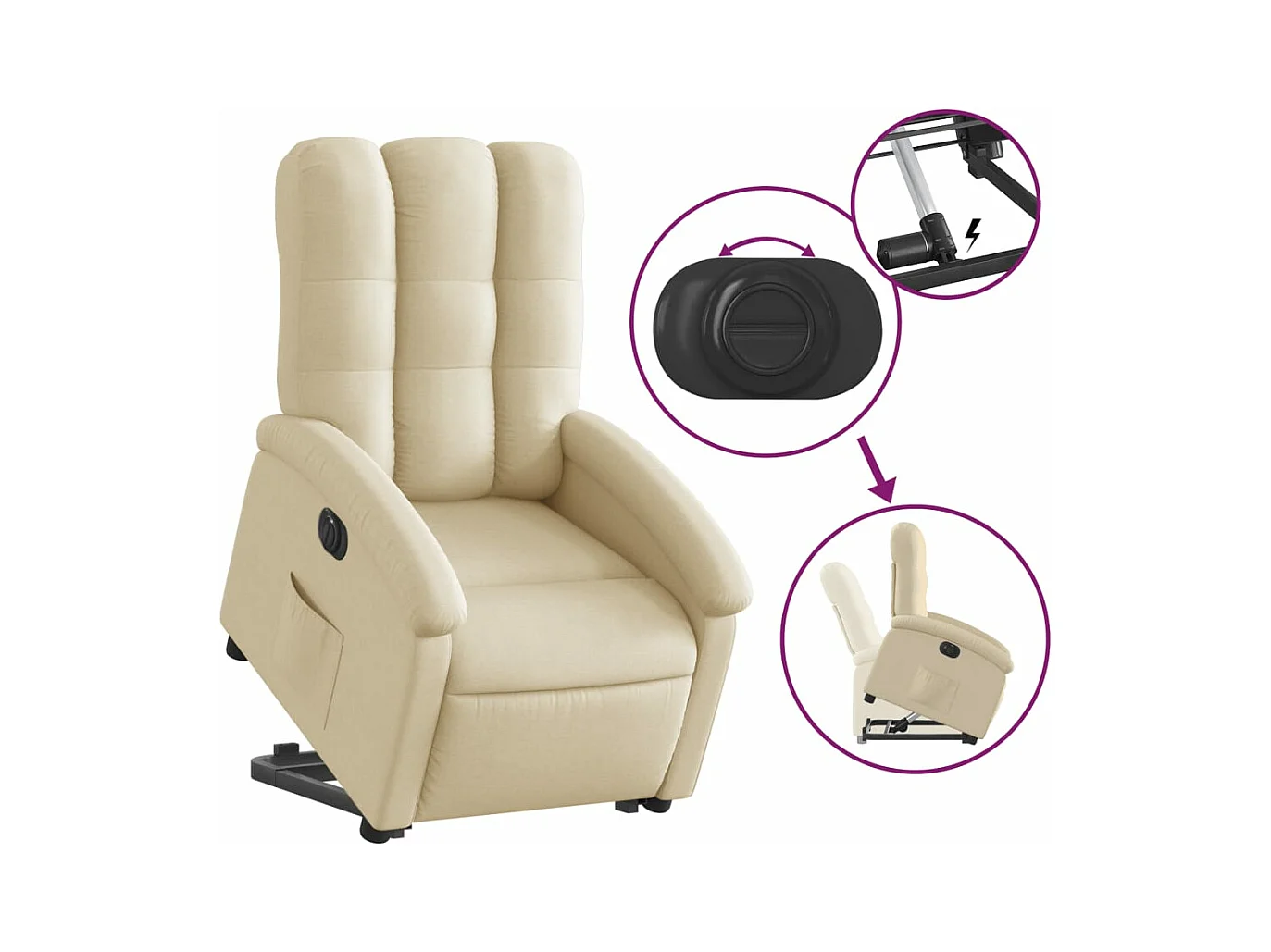 Relaxsessel mit Aufstehhilfe Elektrisch Creme Stoff