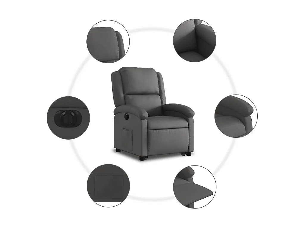 Relaxsessel mit Aufstehhilfe Elektrisch Grau Echtleder