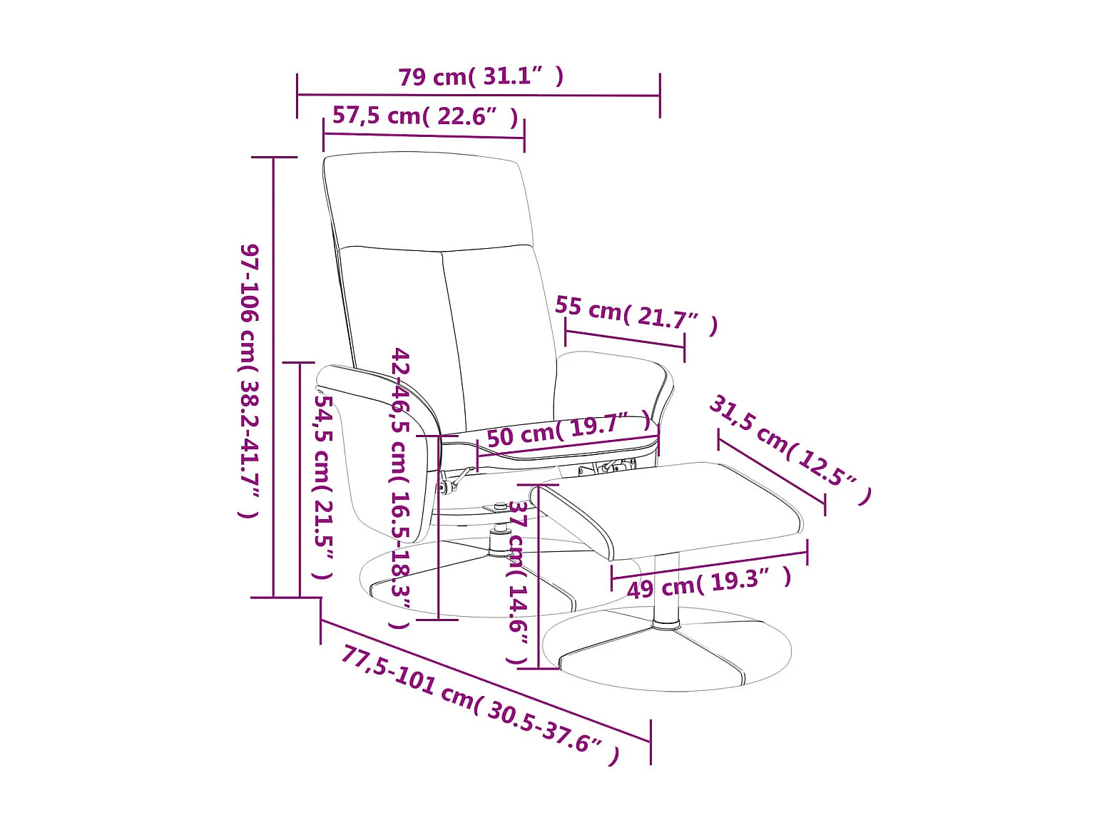 Relaxsessel mit Fußhocker Schwarz Stoff