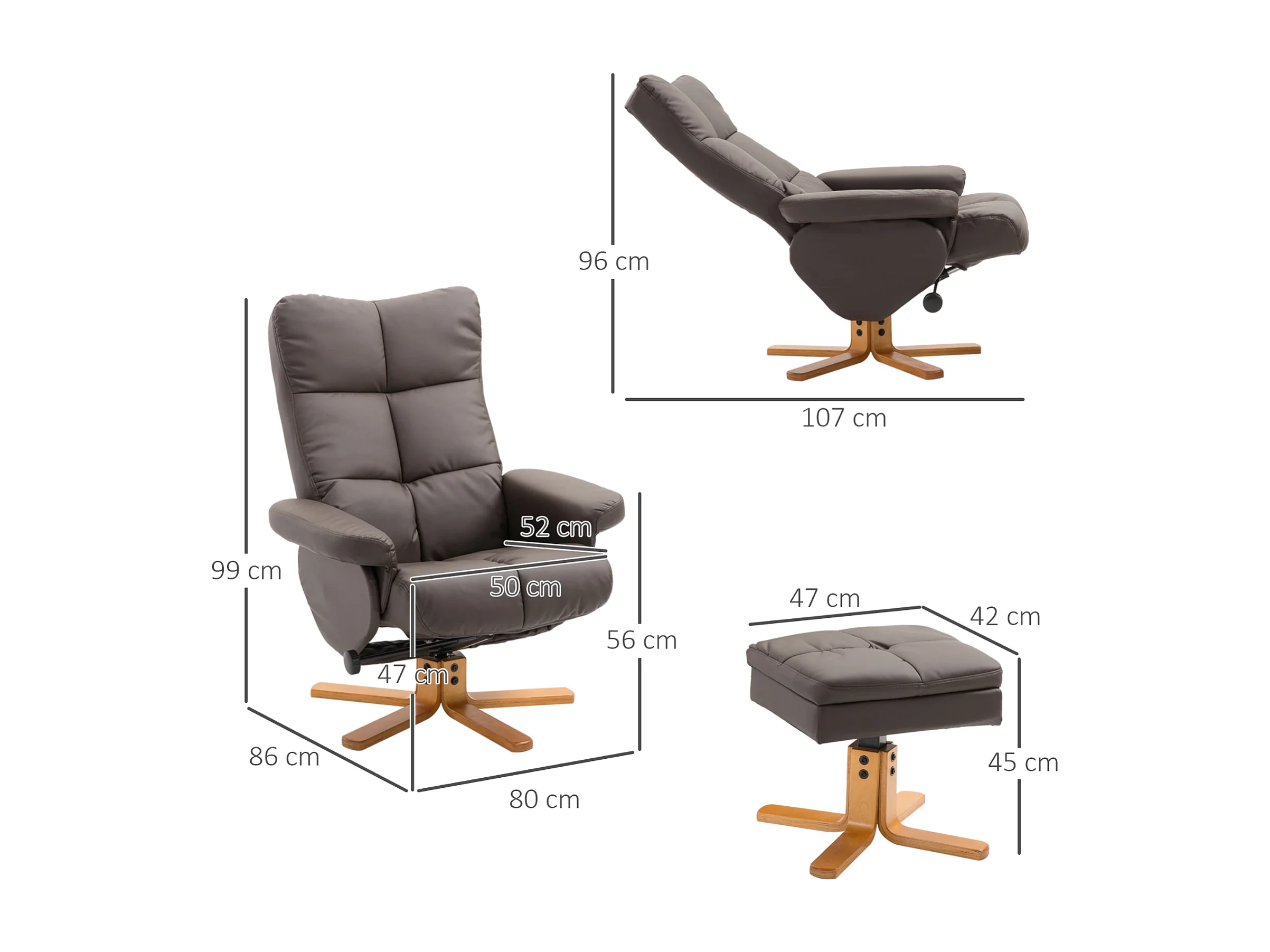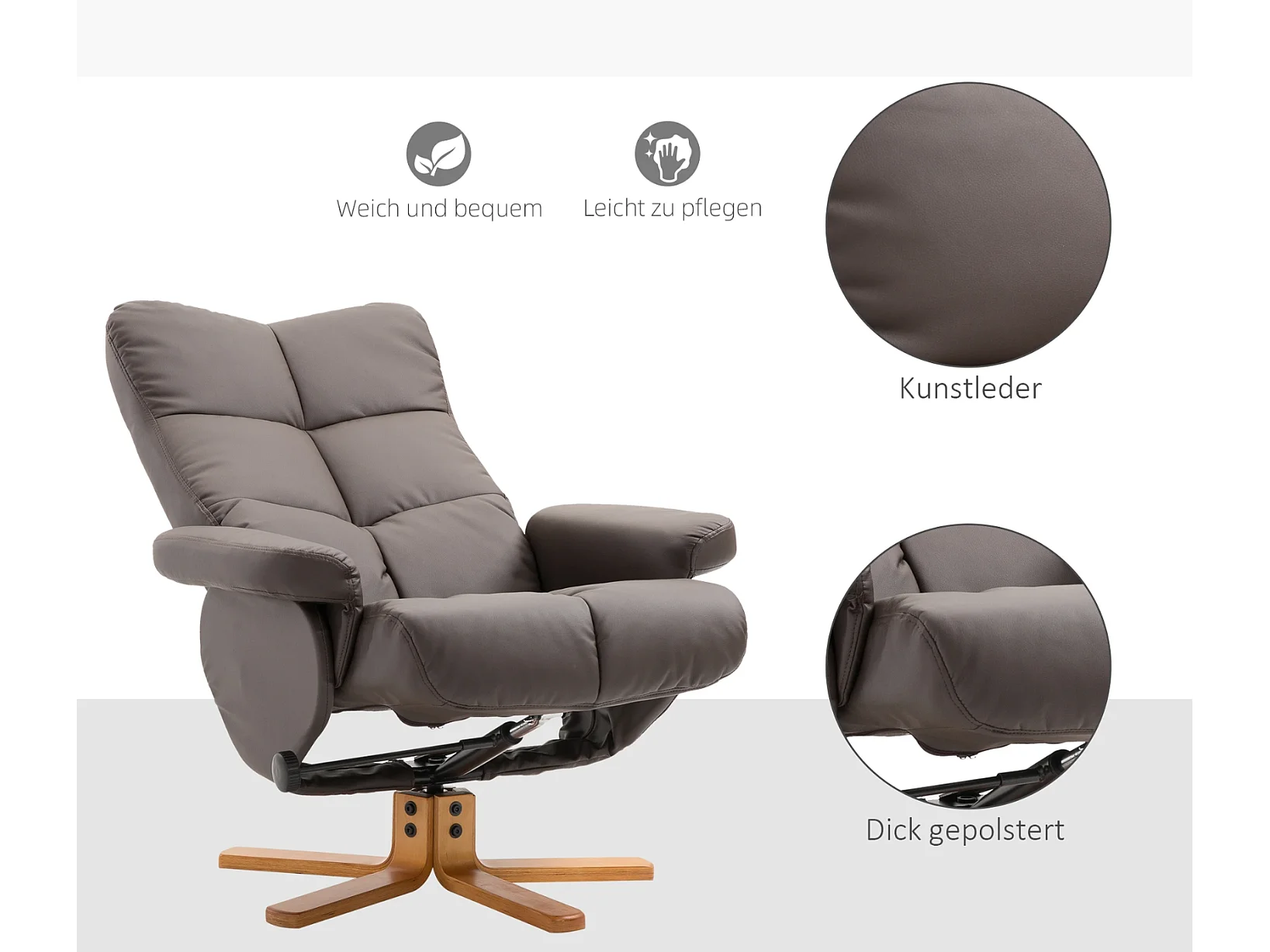 Relaxsessel mit Hocker, 360°drehbarer Fernsehsessel mit Liegefunktion Lesesessel für Schlafzimmer, Wohnzimmer