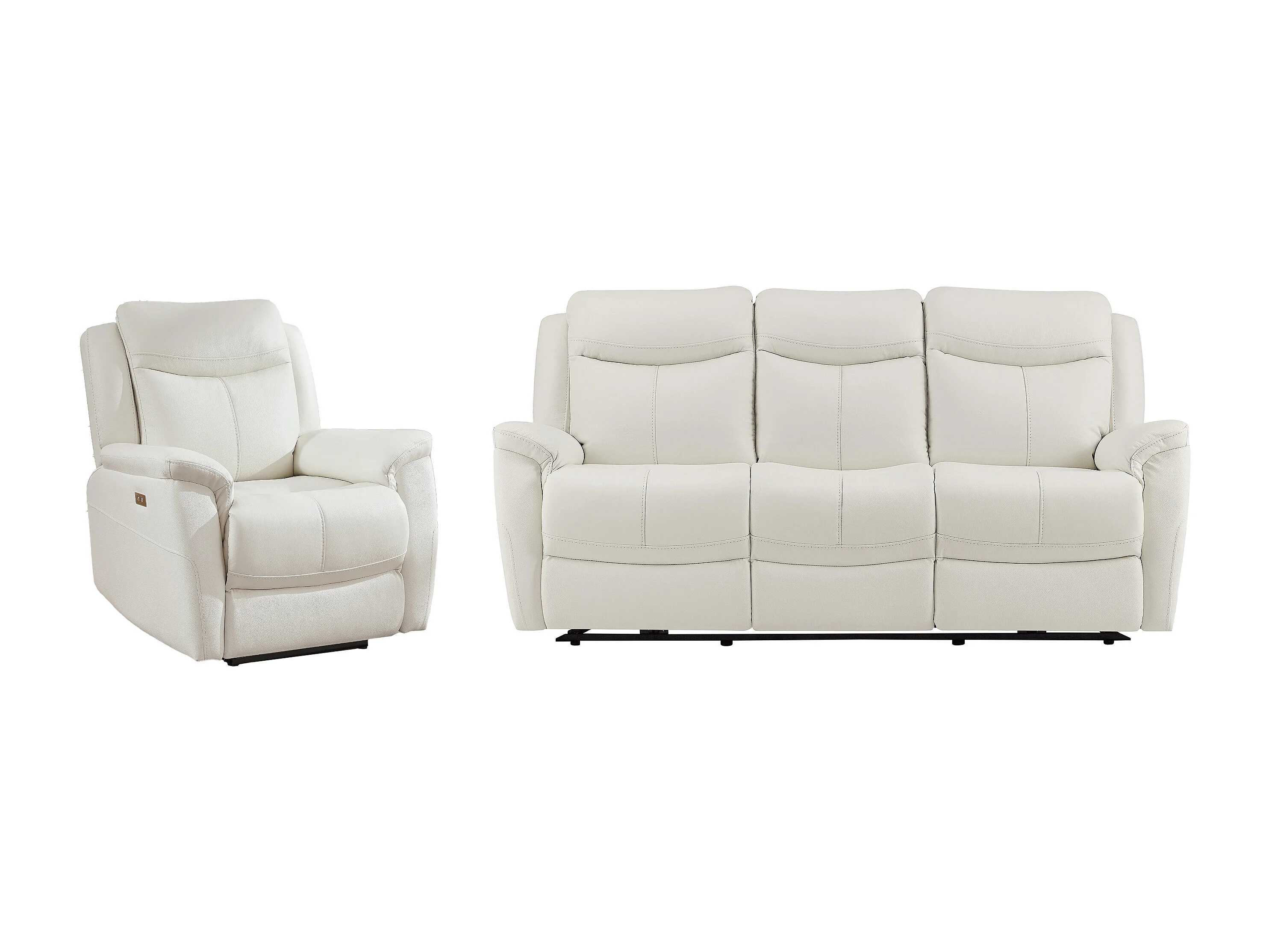 Relaxsofa 3-Sitzer & Relaxsessel elektrisch - Rindsleder - Weiß - NOMAJO