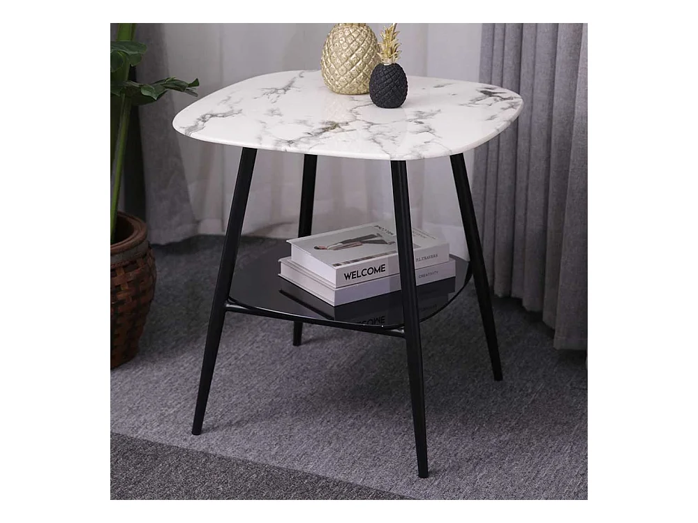 Retro Beistelltisch Glasplatten Marmoroptik und Schwarz
