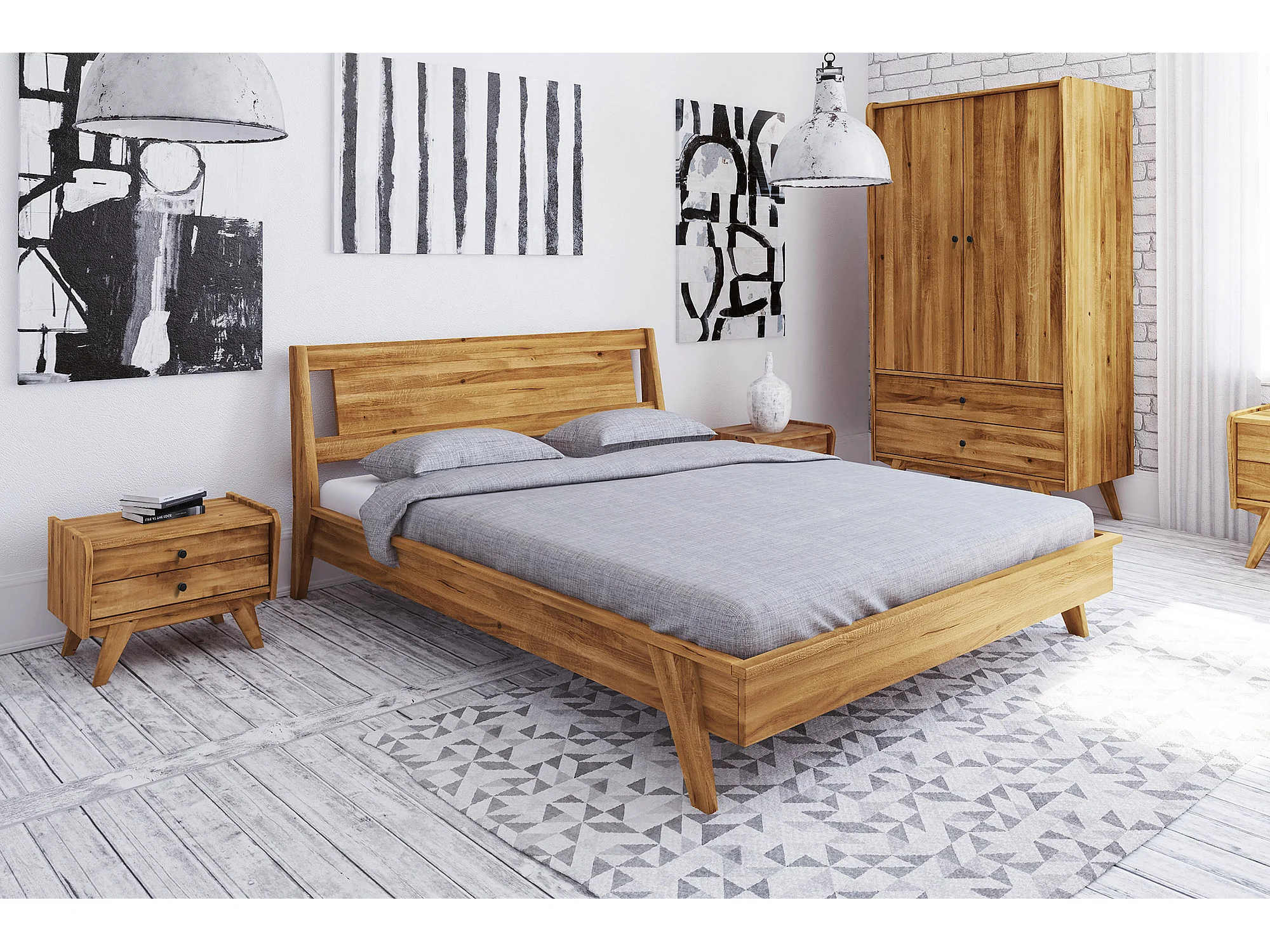 RETRO - Bettgestell mit Holzkopfteil 120 x 200 aus Wildeiche naturgeölt