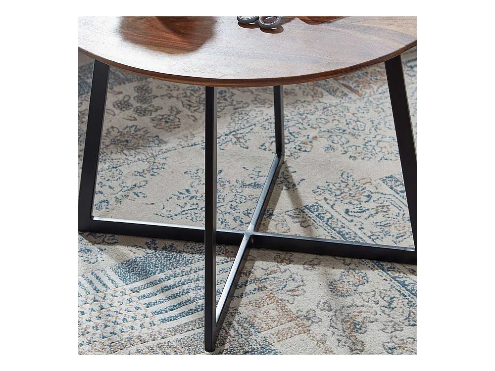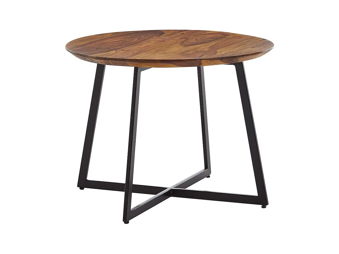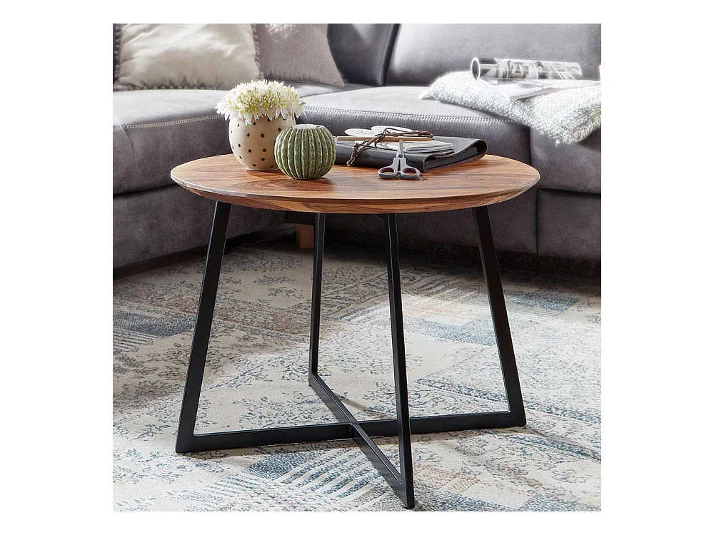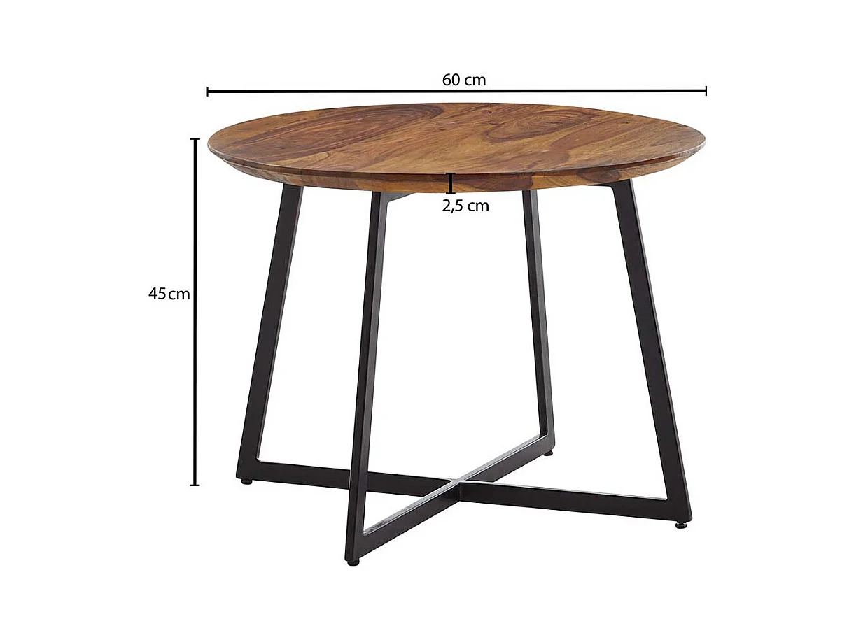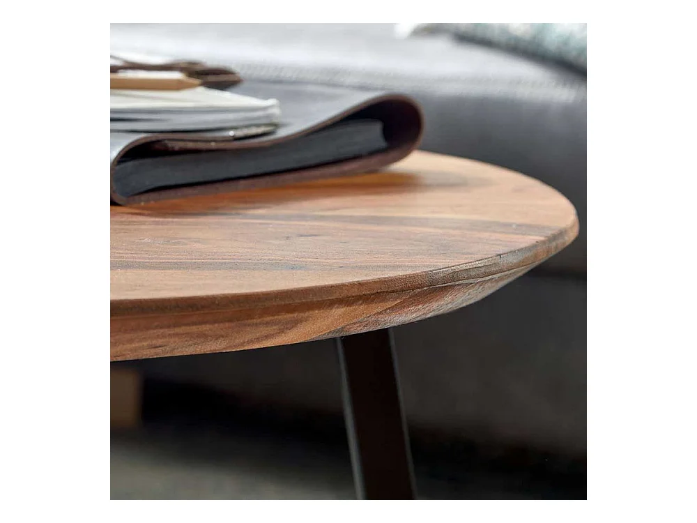 Retro Couchtisch aus Sheesham Massivholz mit Schweizer Kante 60 cm Durchmesser