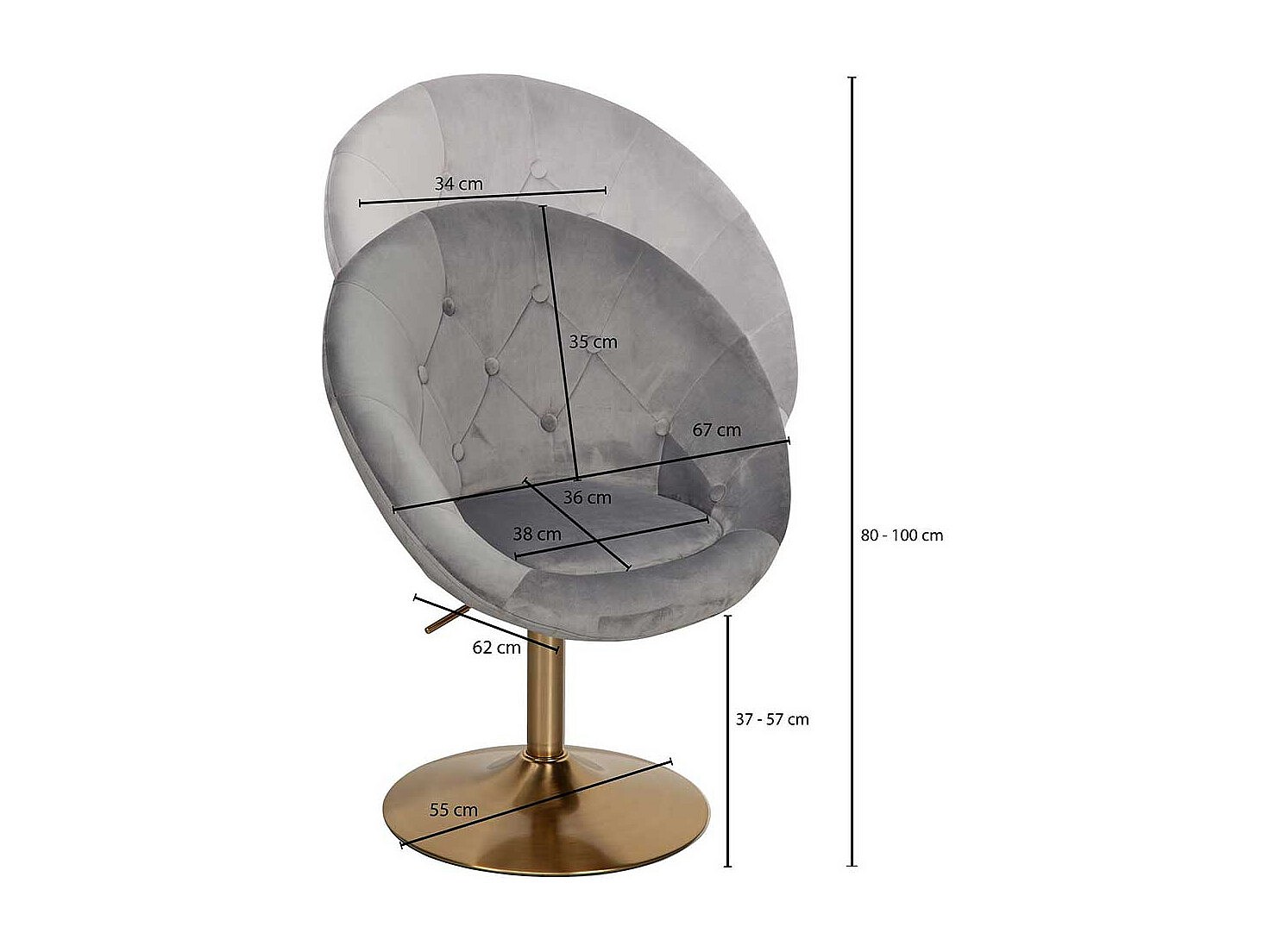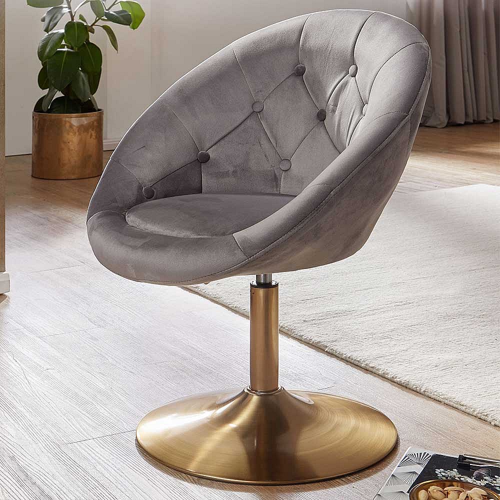 Retro Drehstühle in Grau Samt höhenverstellbar