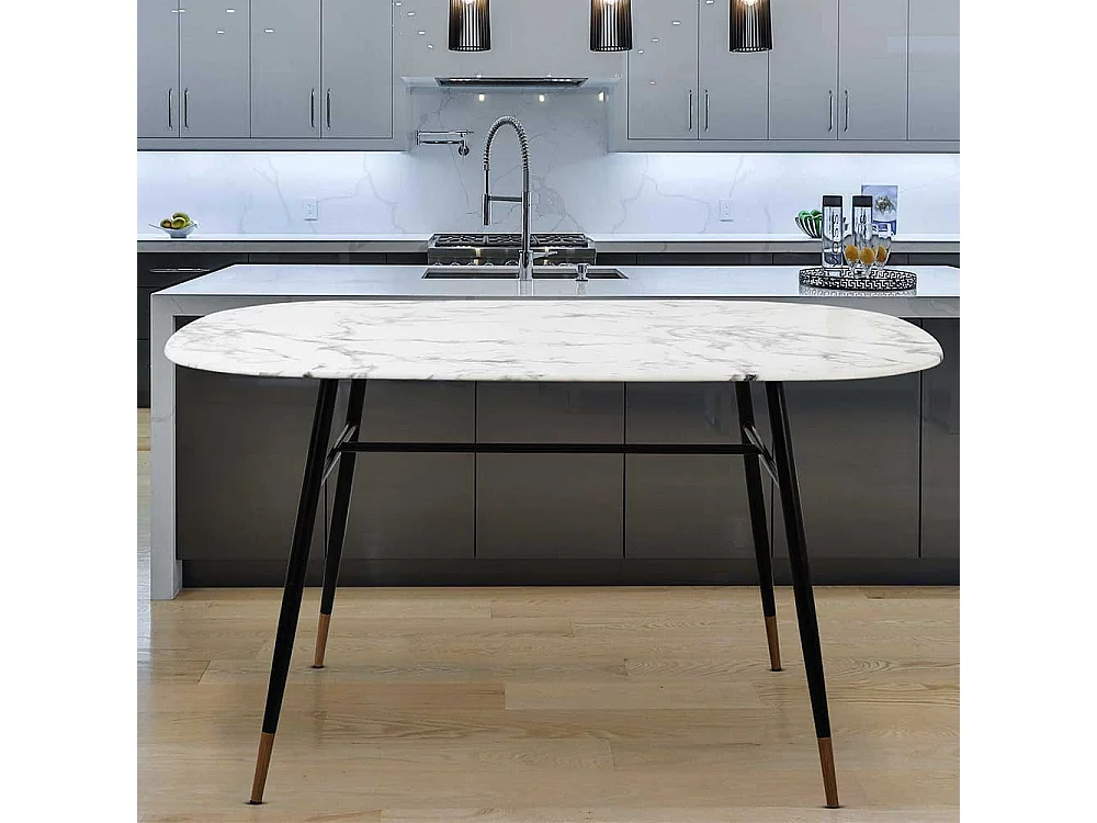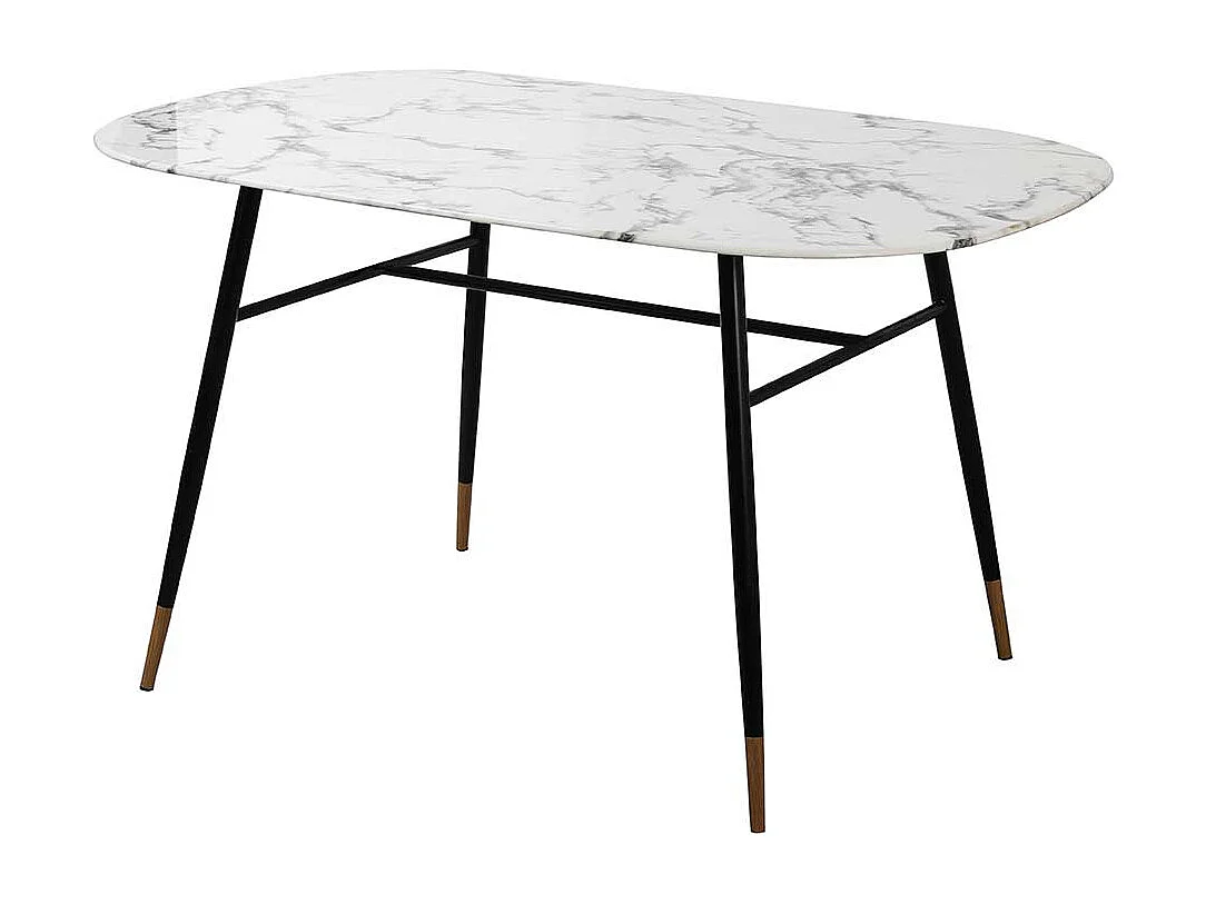Retro Esszimmertisch Marmoroptik Glasplatte Metallgestell