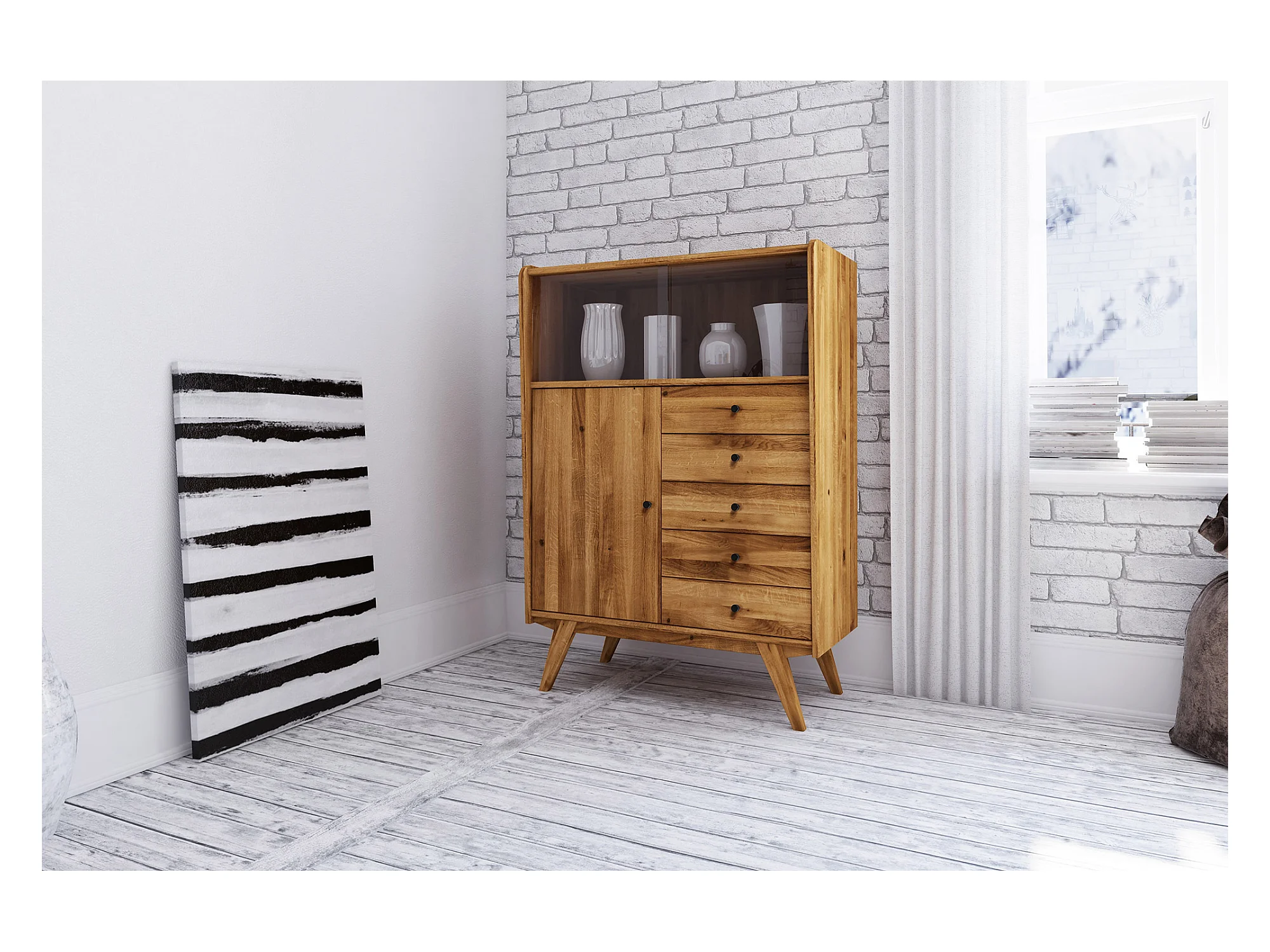 RETRO - Kommode 100% aus massivem Holz aus Wildeiche, naturgeölt