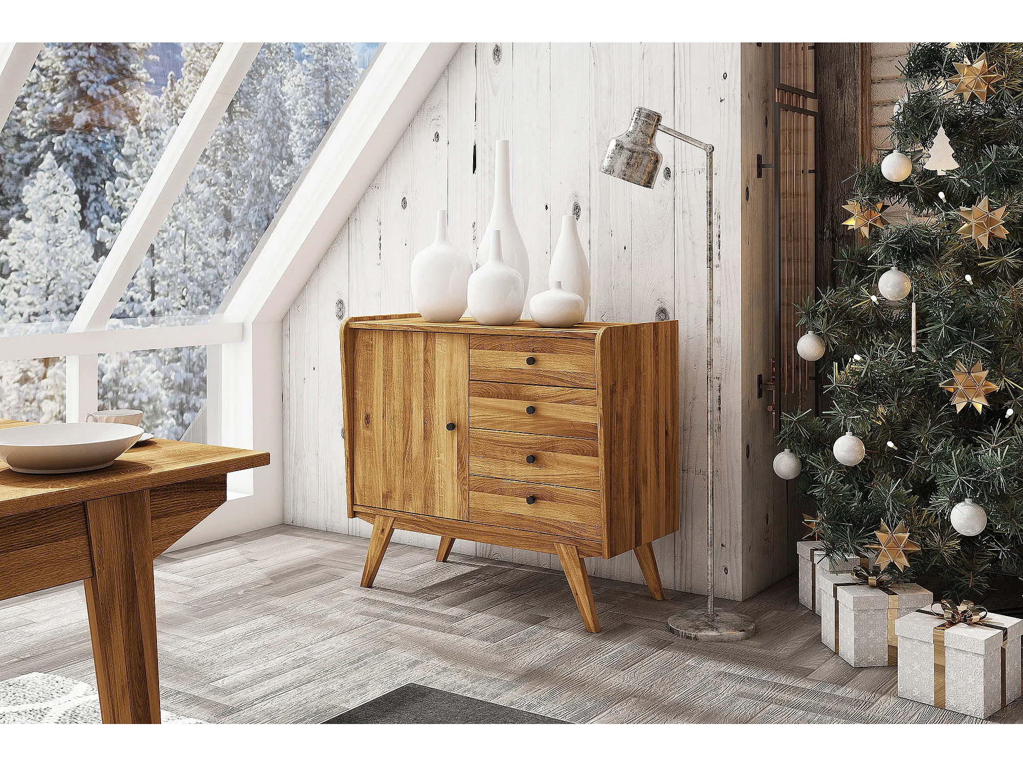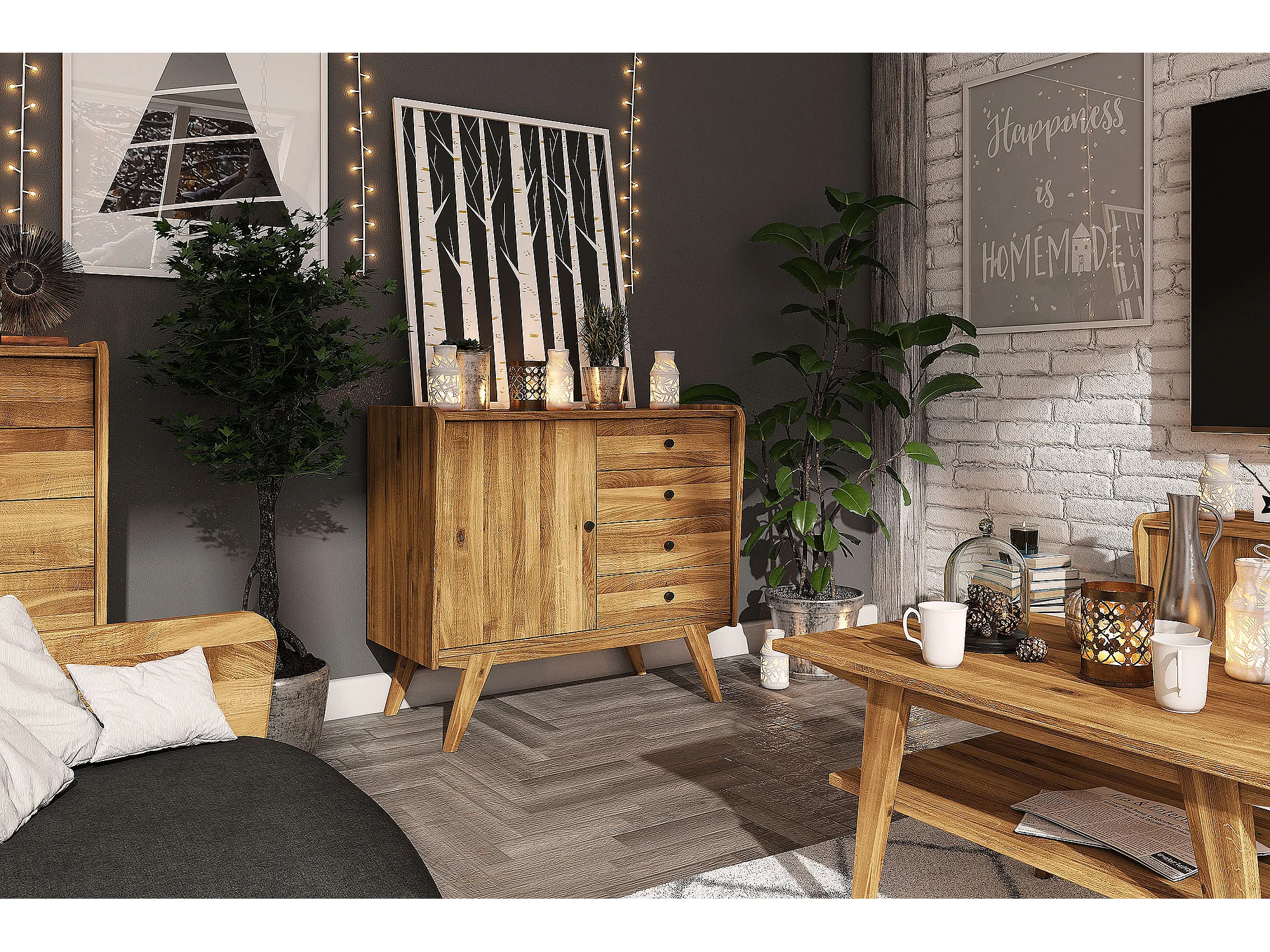 RETRO - Kommode 100% aus massivem Holz aus Wildeiche, naturgeölt