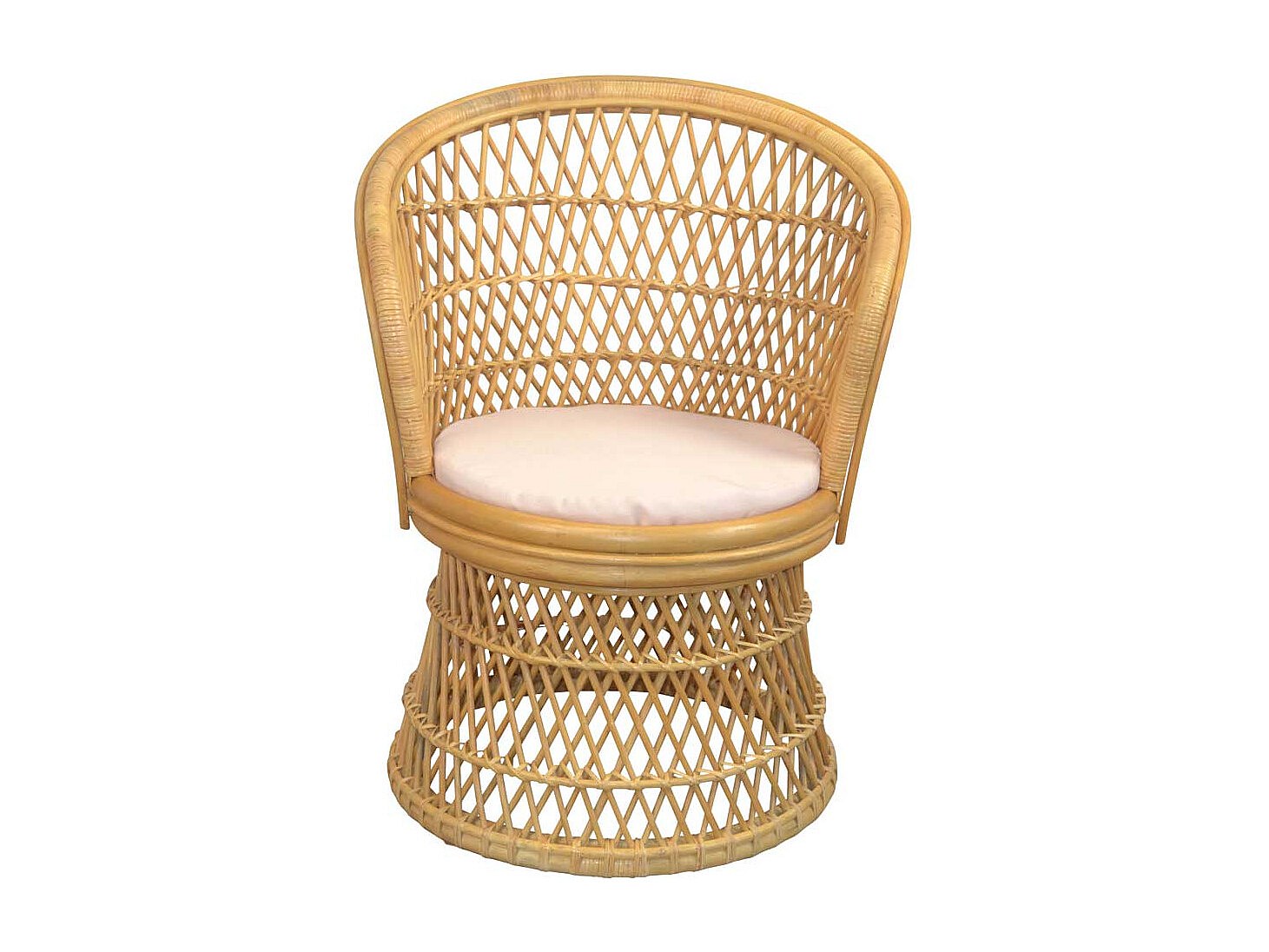 Retro Korbsessel Beige aus Rattan Geflecht Polsterauflage