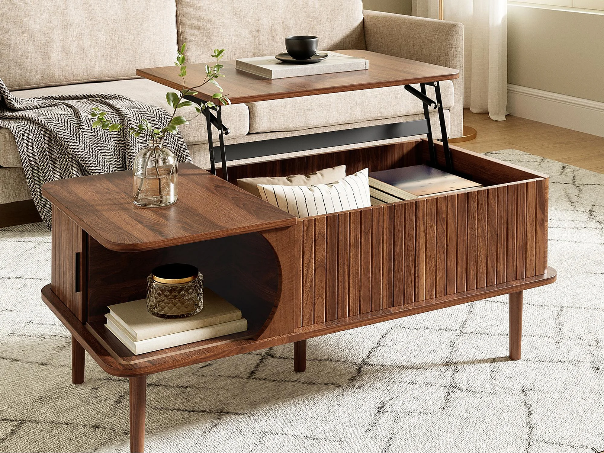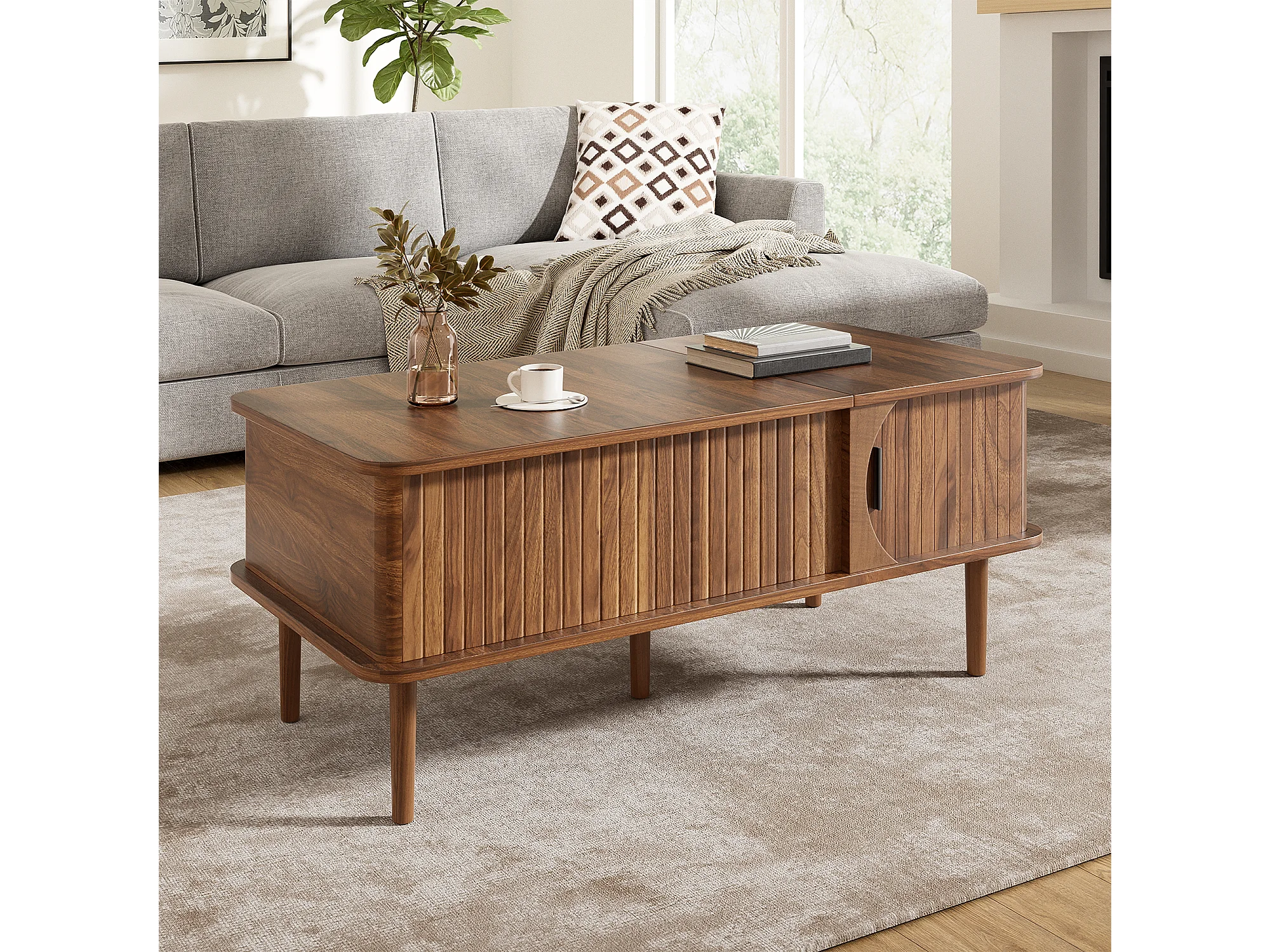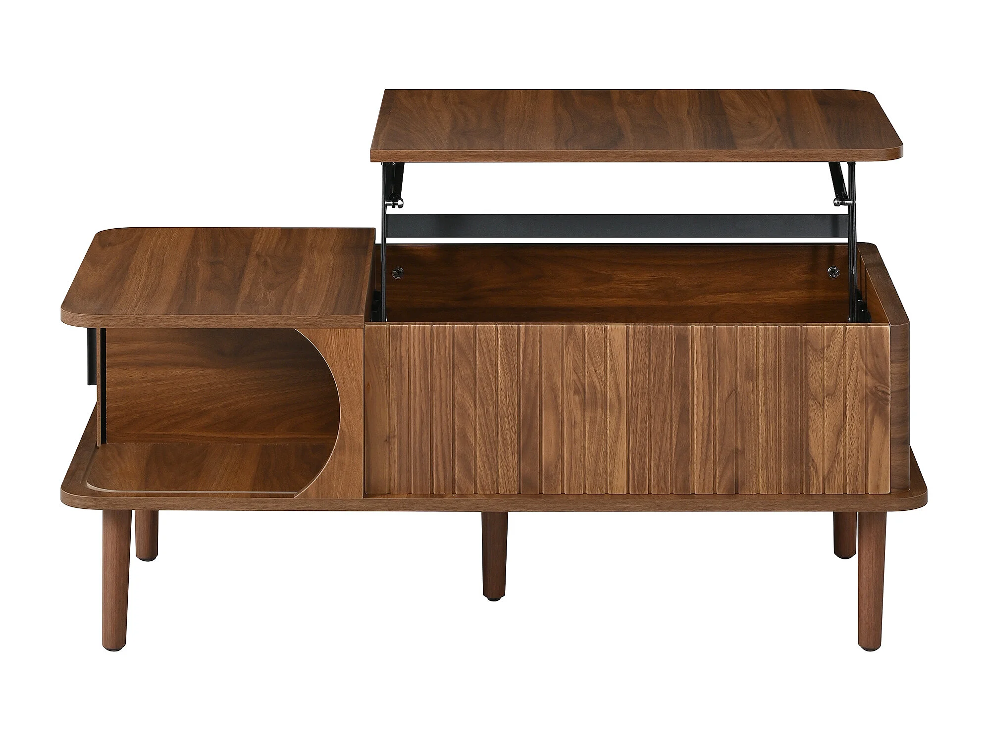 Retro-moderner höhenverstellbarer Beistelltisch 100x48x55,5 cm - Verstellbare Platte - 1 Schiebetür - Holzfüße - Braun