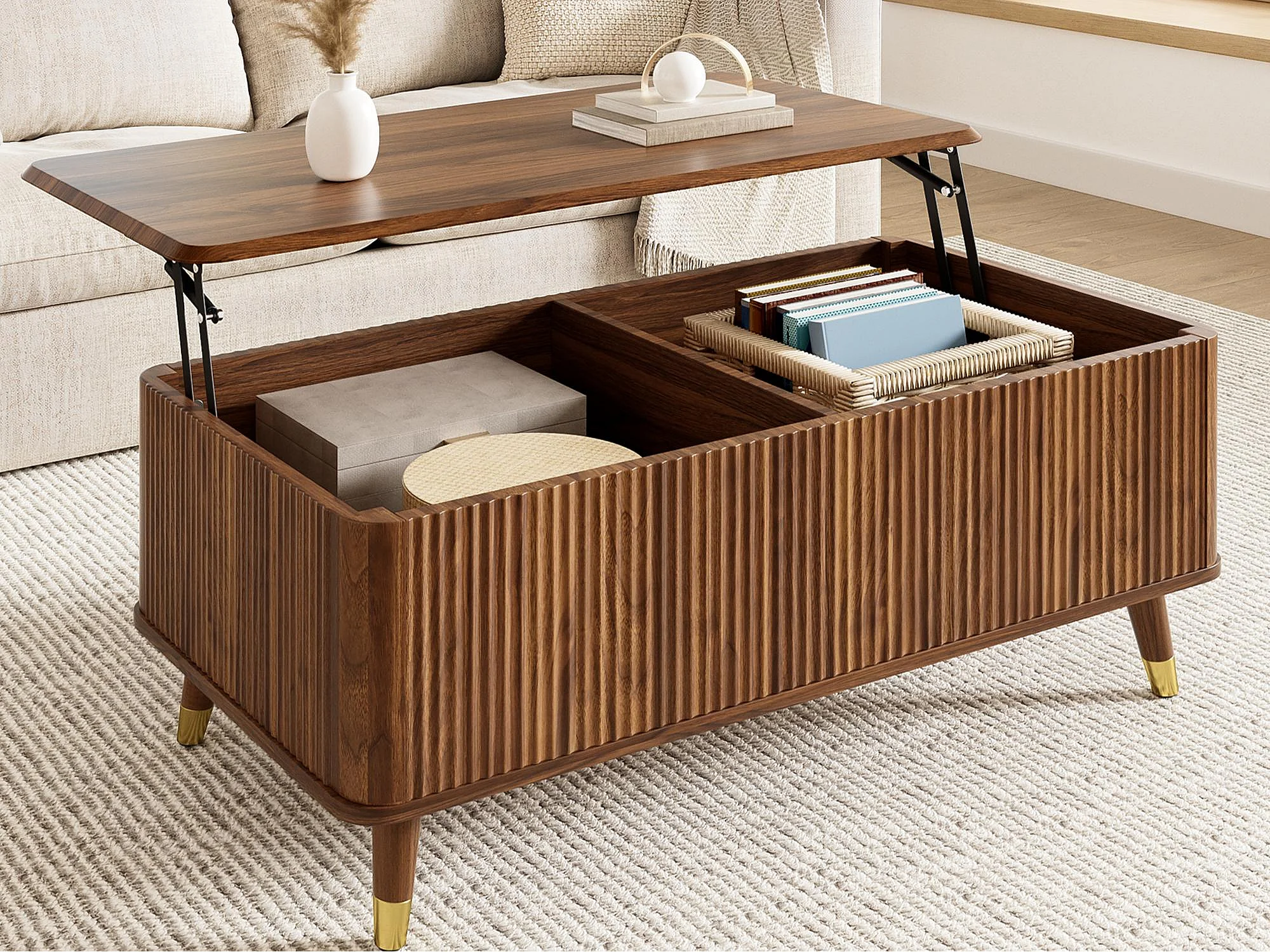 Retro-moderner höhenverstellbarer Beistelltisch 97x52x56,5 cm - Verstellbare Platte - Großer Stauraum - Massivholzfüße - MDF - Braun