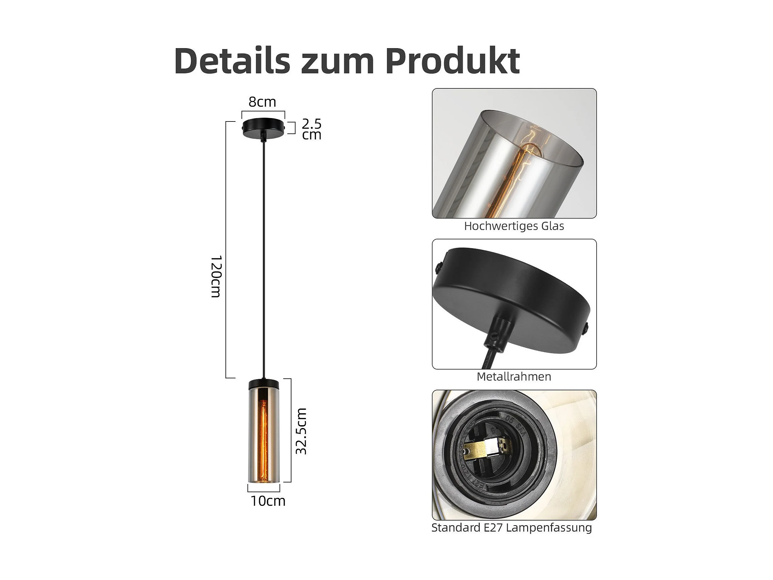 Retro Pendelleuchte Esstischlampe Glas matt schwarz 1 flammig E27