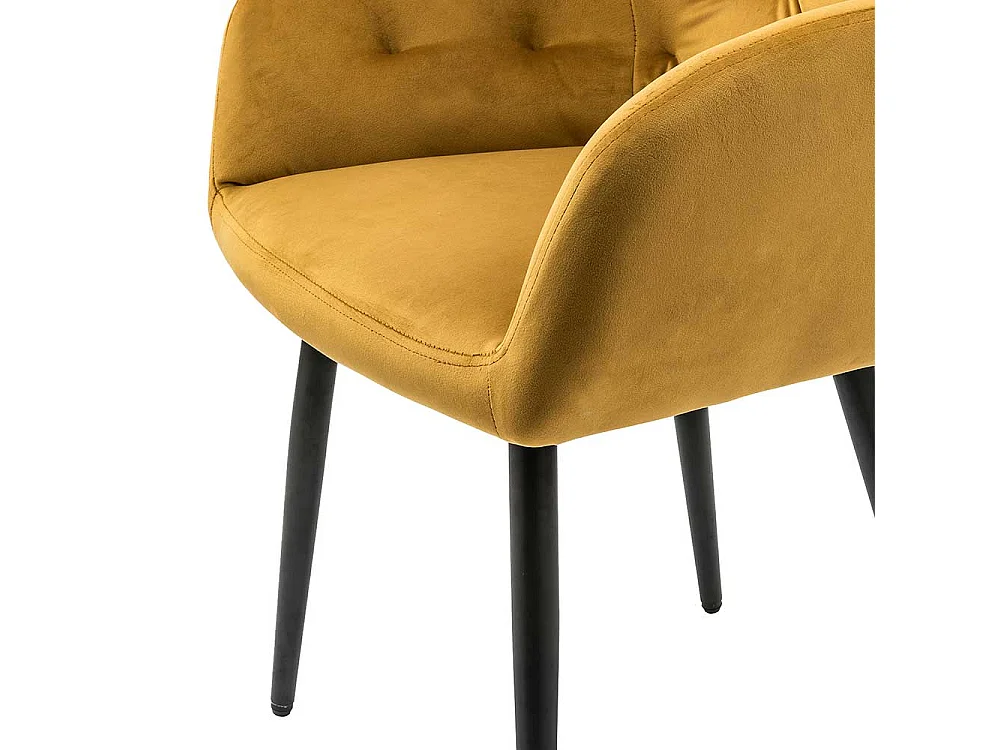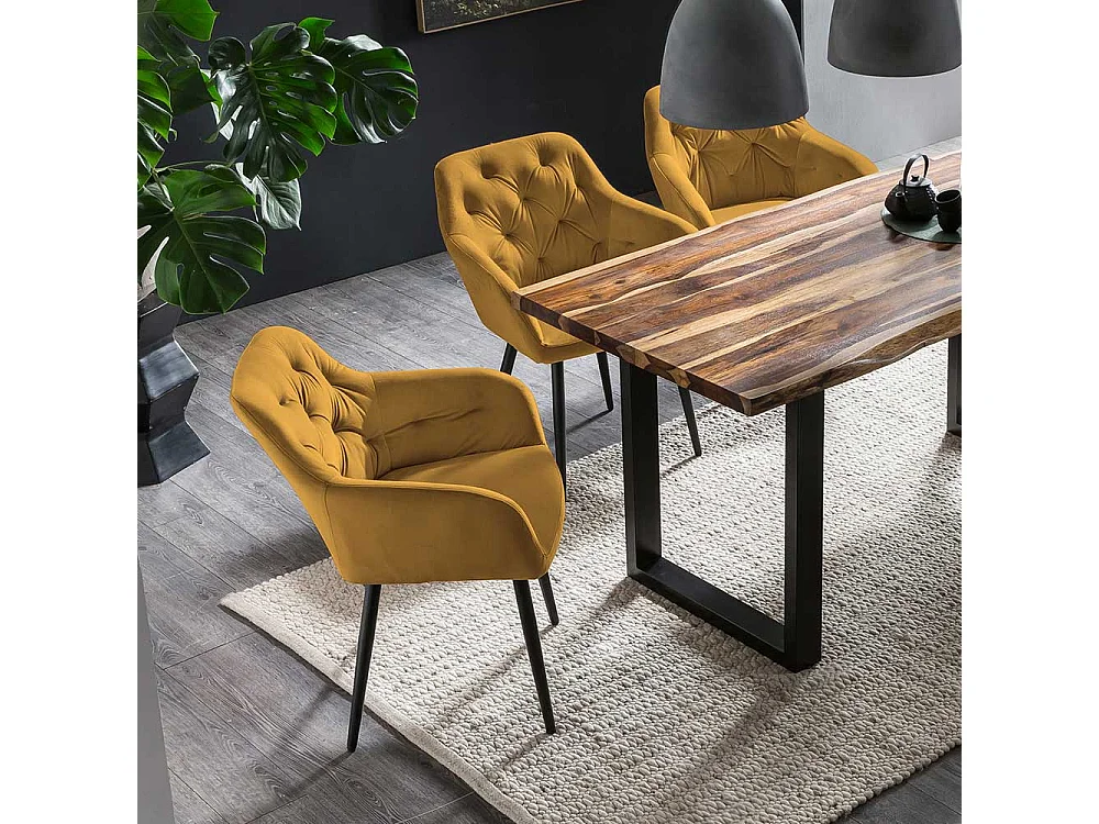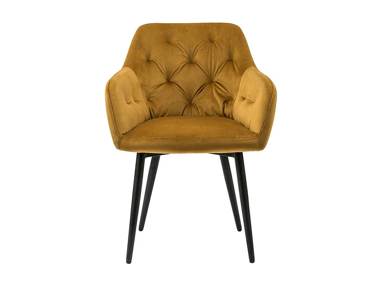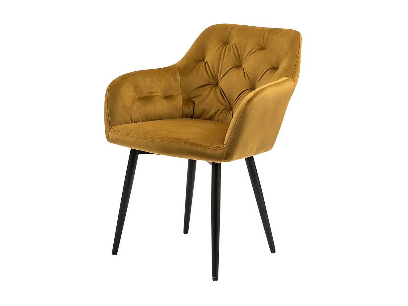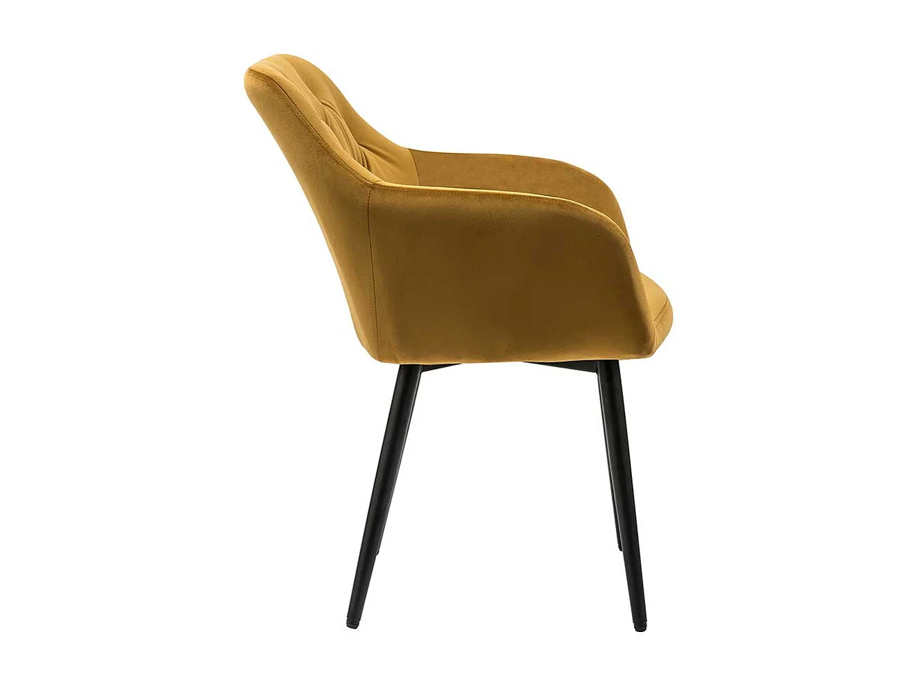 Retro Polsterstuhl in Gelb Samt Armlehnen