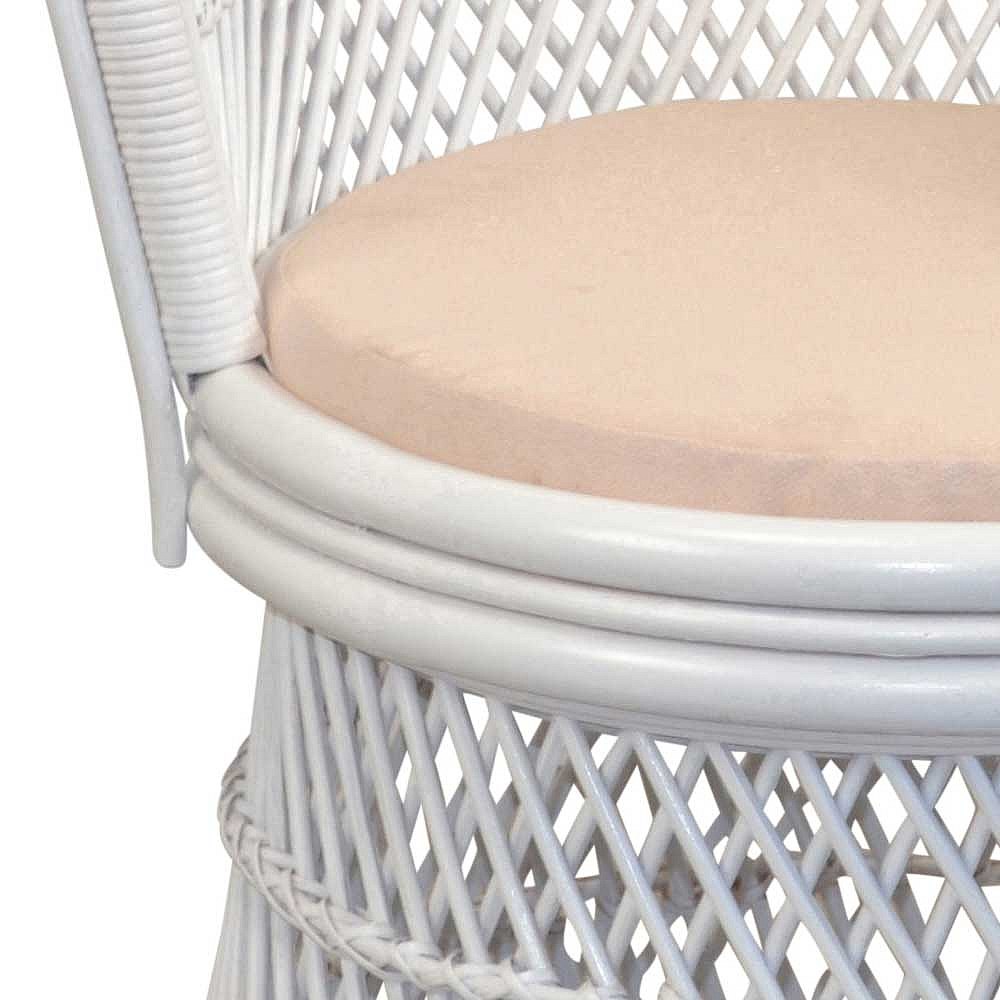 Retro Rattan Sessel wei� mit Armlehnen 48 cm Sitzh�he