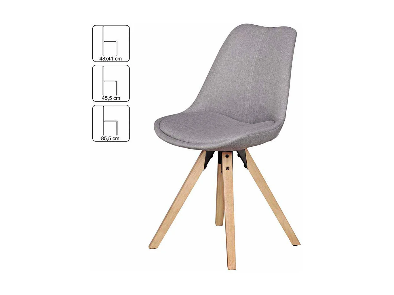 Retro Schalenstuhl in Hellgrau Stoff Holz Gestell (2er Set)
