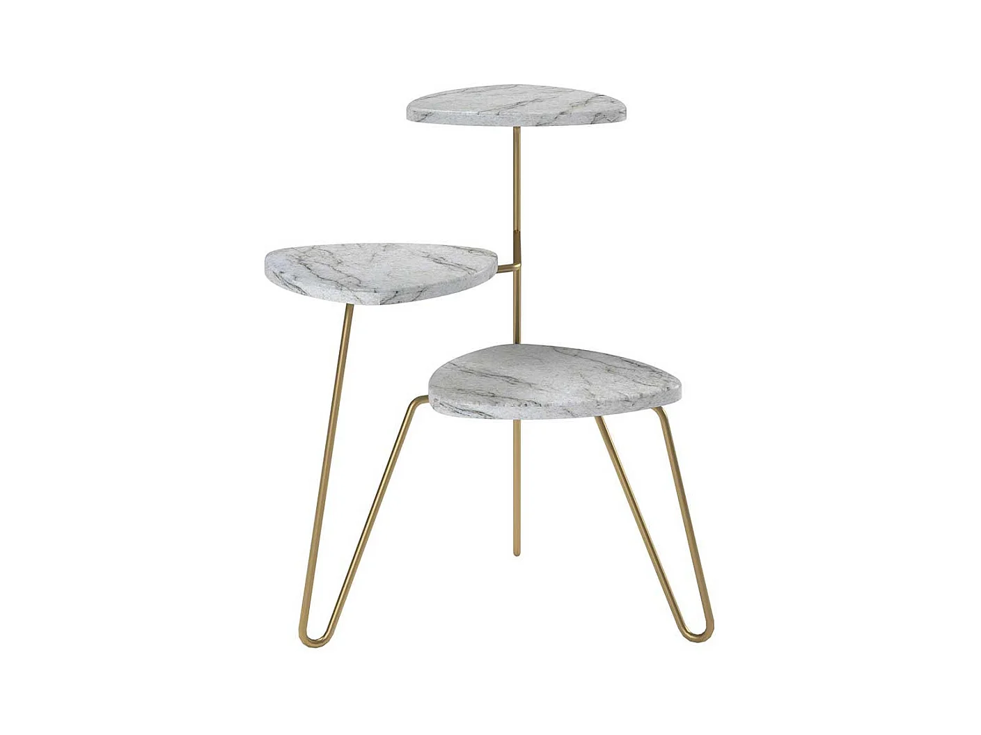 Retro Stil Blumentisch in Weiß Marmor Optik Goldfarben