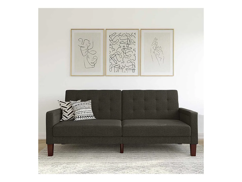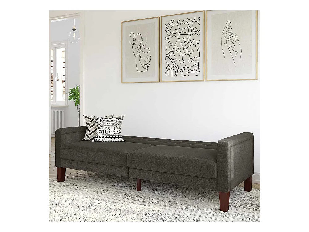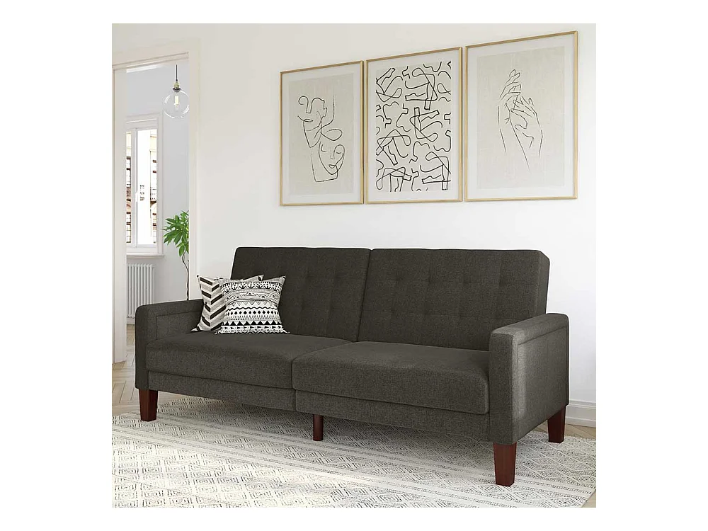 Retro Stil Schlafsofa in Grau Stoff Rücken Klappmechanik