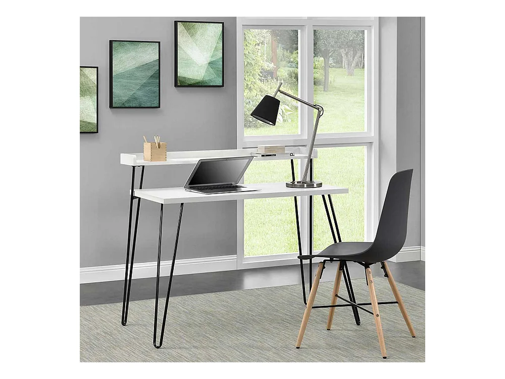 Retrostil Laptopschreibtisch in Weiß und Schwarz 90 cm hoch