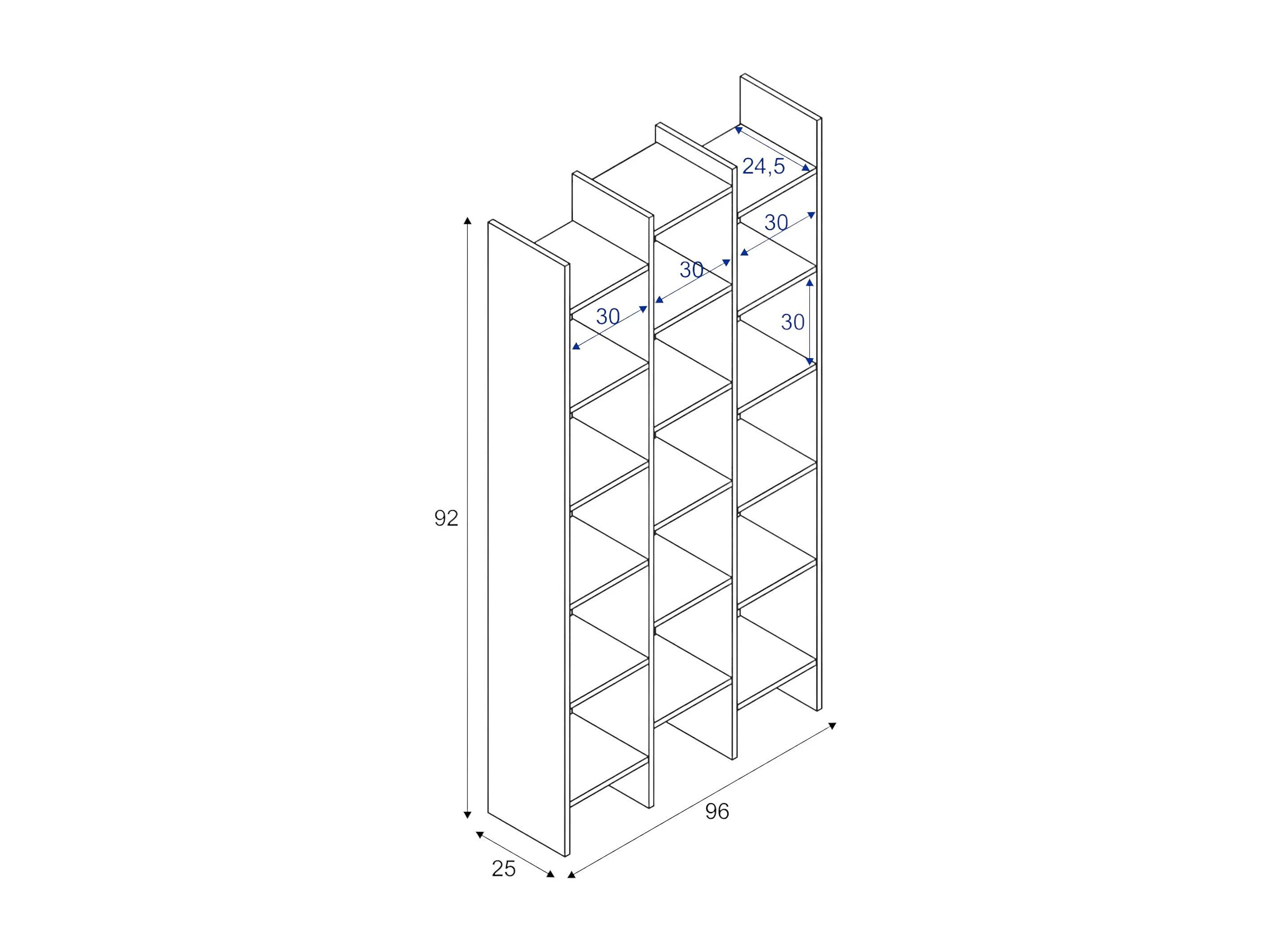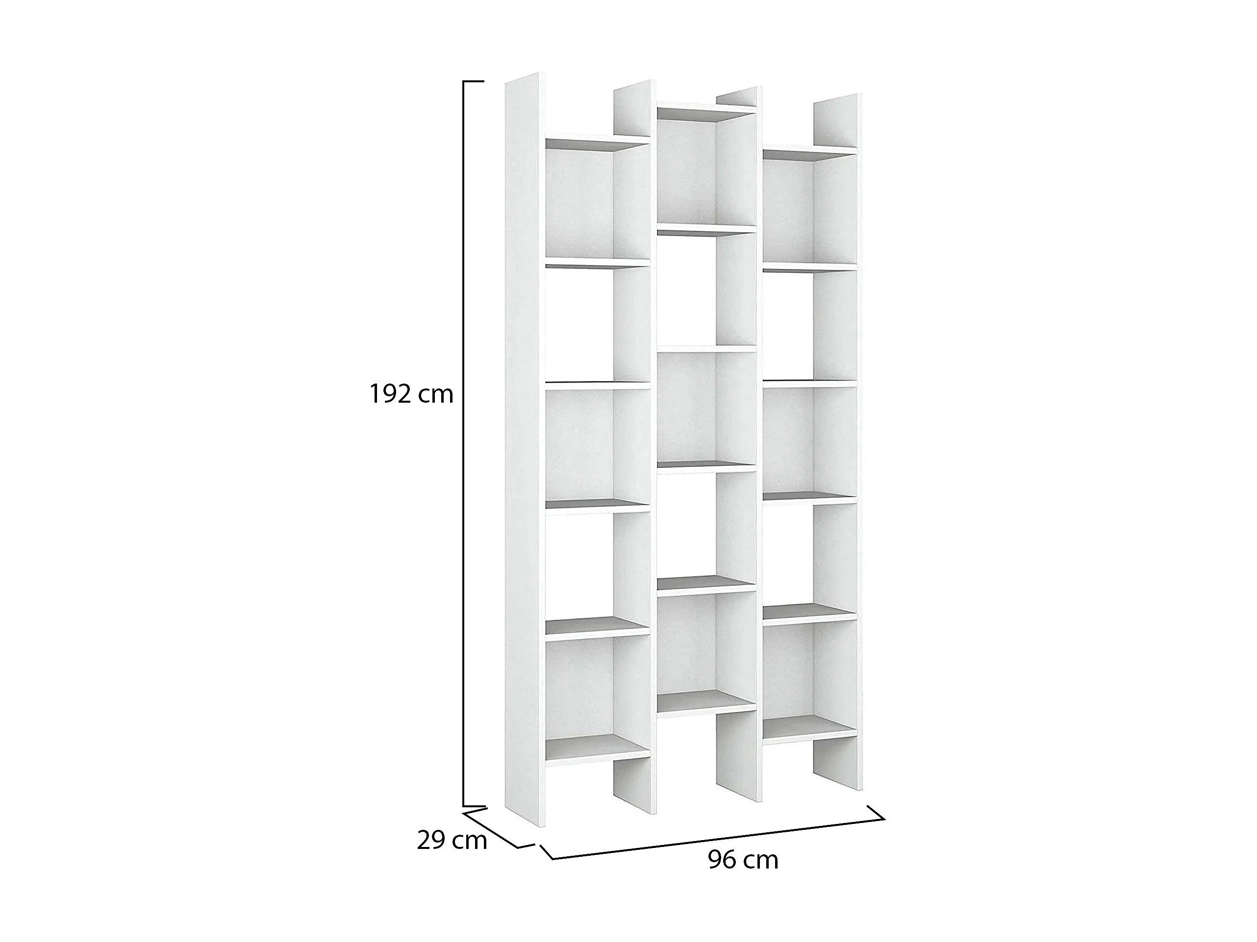 Rockford Bücherregal, Bücherregal mit 18 Regalen, Regal mit quadratischen Fächern, modernes Büroregal, 96 x 29 x 192 cm, Weiß