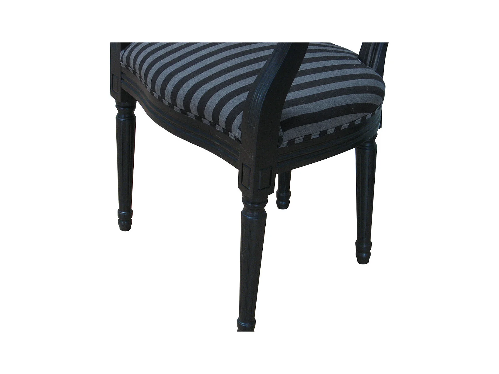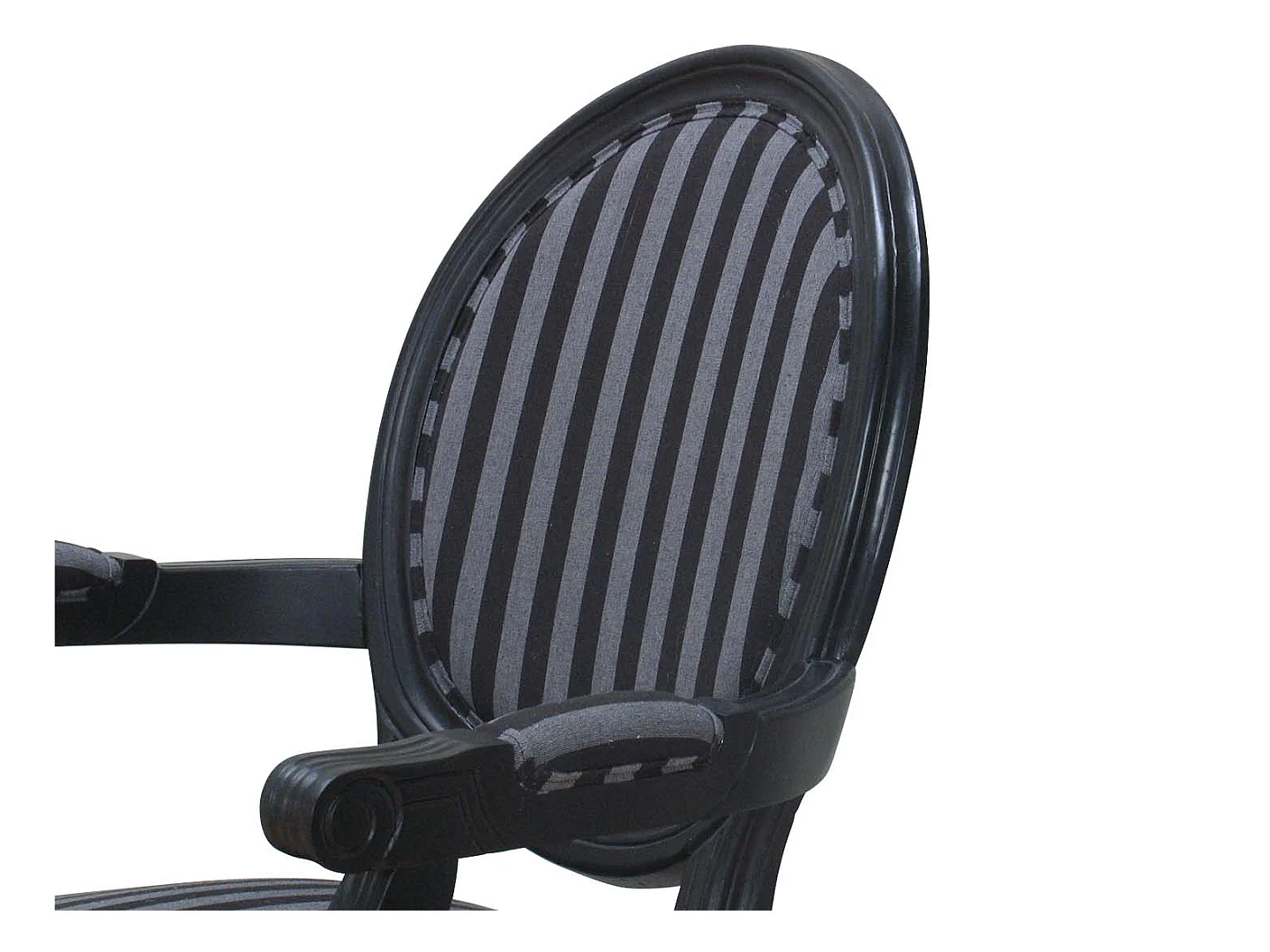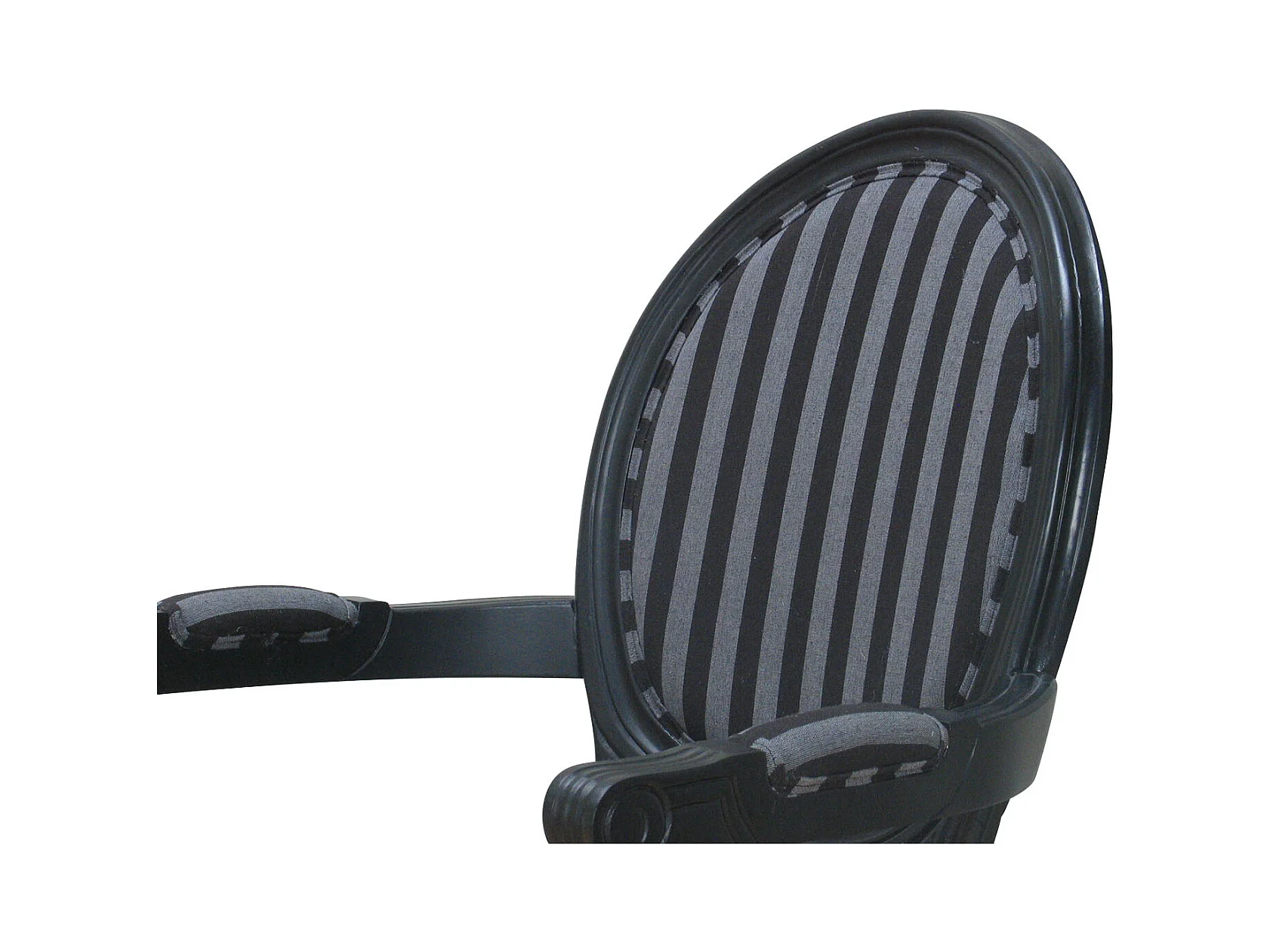Rokoko/Amaretta Esszimmerstuhl mit Armlehne antik schwarz, Stoff schwarz gestreift.