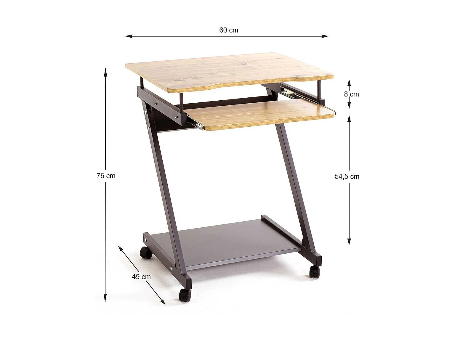 Rollbarer Laptopschreibtisch mit Tastaturauszug Druckerablage