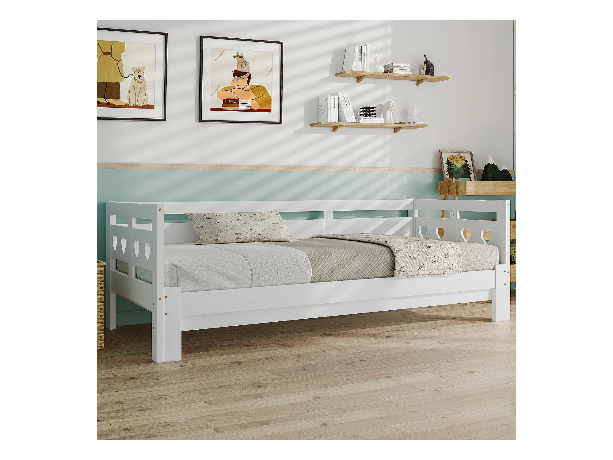 Rollbett 90 x 190 cm – Massivholz – Rollrahmen – Herzmuster – Weiß
