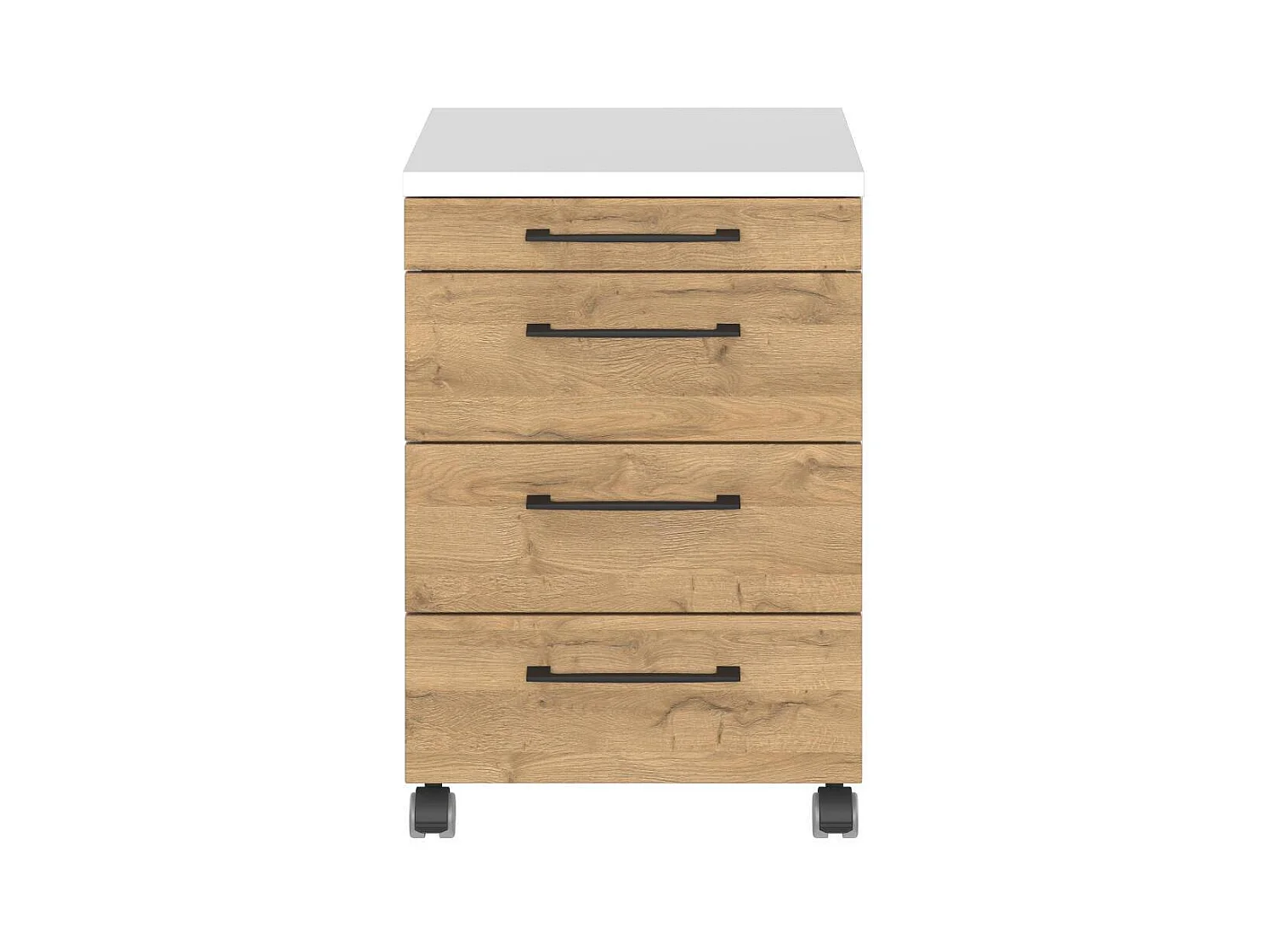 Rollcontainer Schreibtischcontainer in Wildeichefarben mit Metallgriffen